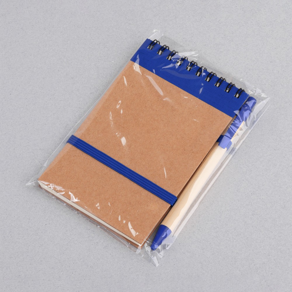 Блокнот - переработанный картон, ручка - переработанный пластик, паста черного цвета, 70 листов, без разлиновки