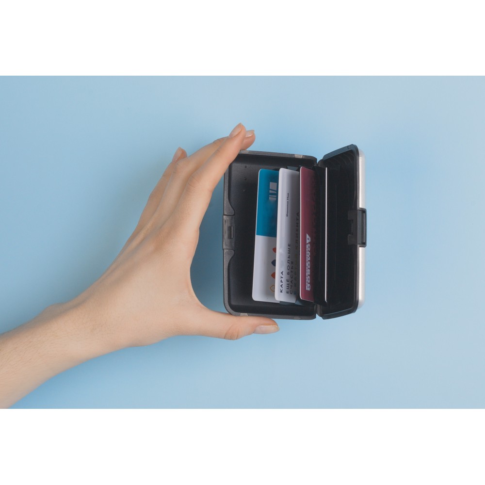 Стильный футляр для банковских карт и визиток с RFID - защитой. Простое и практичное хранение банковских и скидочных карт, визиток. Прочный алюминиевый корпус, внутри содержит 6 отделений.