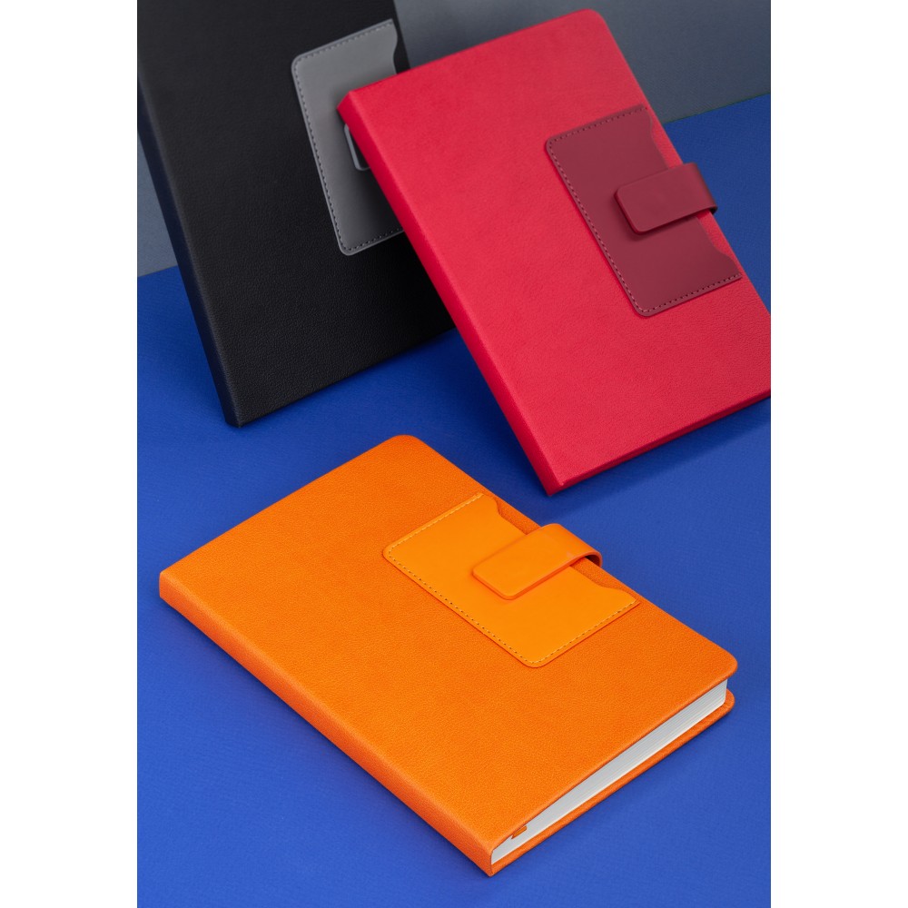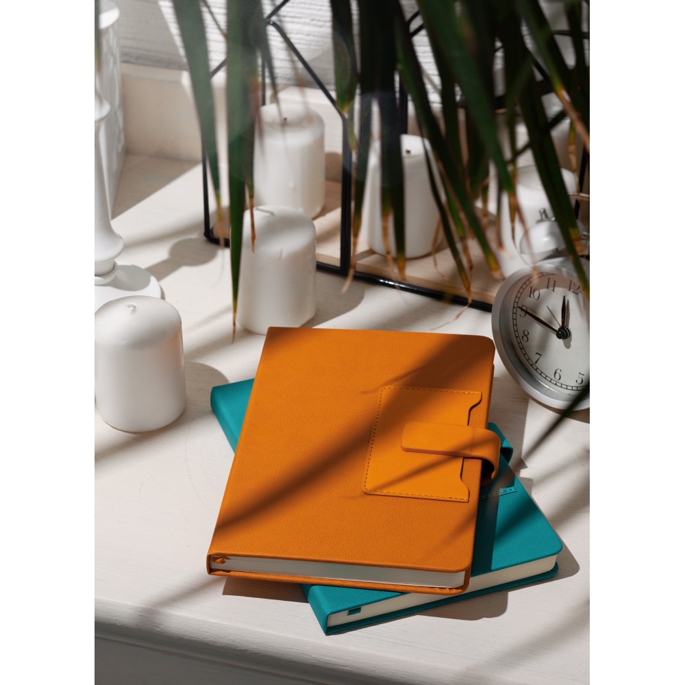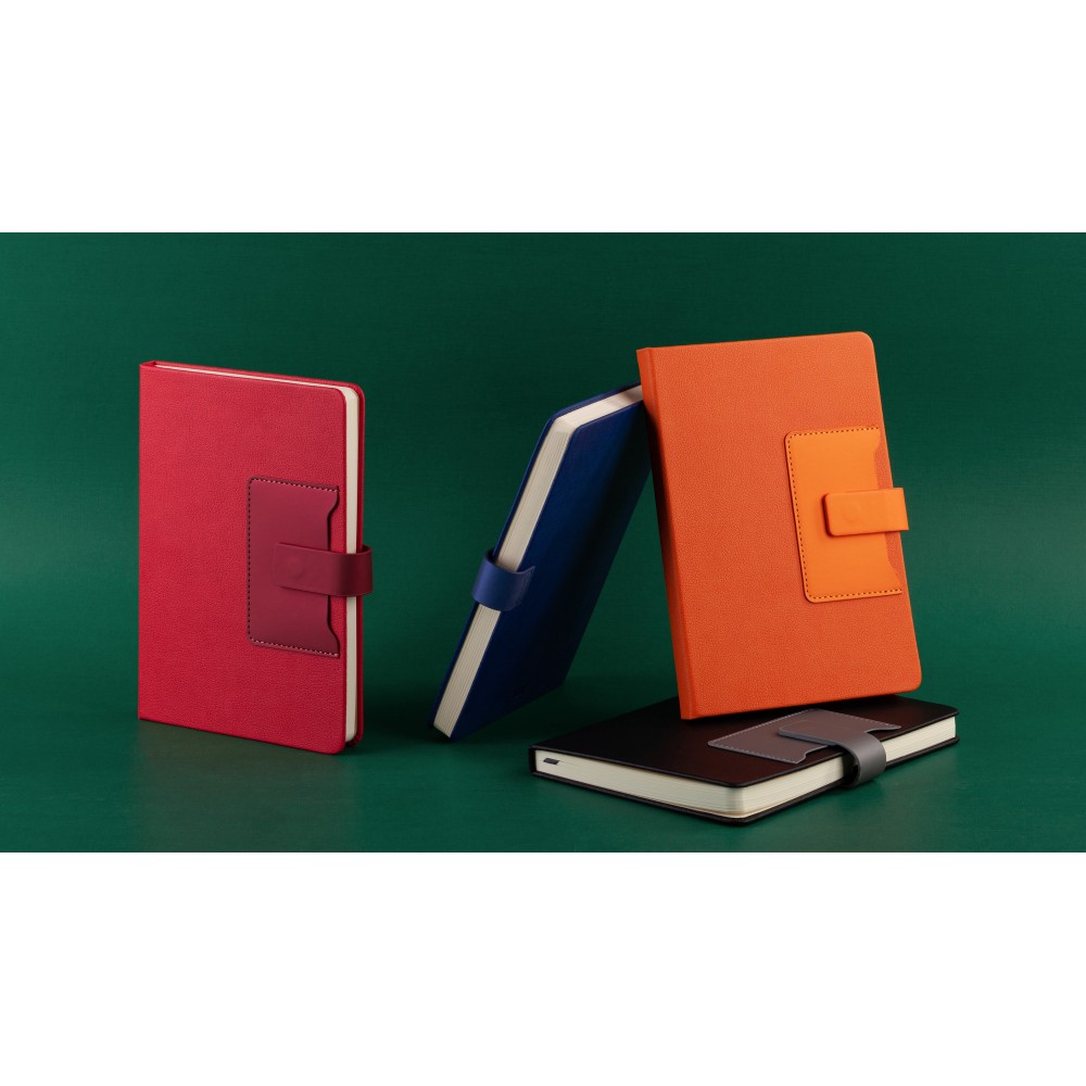 На лицевой стороне ежедневника предусмотрен карман для карт, записок, визиток. Чтобы заметки и записи были под контролем, а пользователь в любой момент мог внести новую информацию - у "Монти" предусмотрена петелька для ручки. Кроме того, ежедневник закрывается на магнитный хлястик.