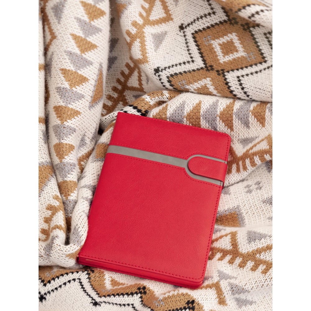 Матовая плотная обложка с выраженной текстурой натуральной кожи дополнена стильным вырезом – полосой серого цвета с прошивкой по периметру. Внутренний блок включает 256 страниц из бумаги плотностью 70 гр., срезом в цвет обложки и закладкой-ляссе, благодаря которой его удобно сразу открывать на нужной странице.