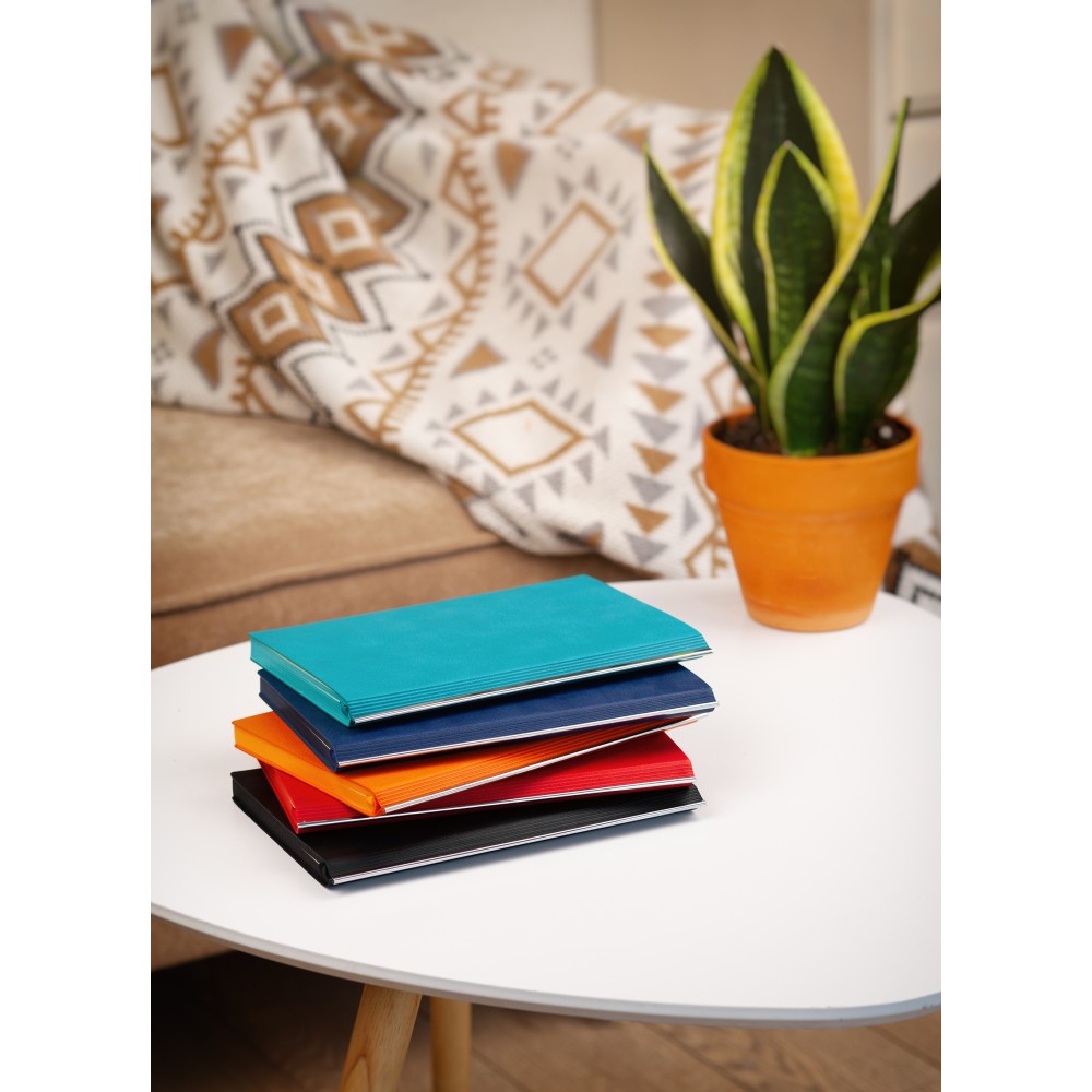 Притягивает внимание, офисные принадлежности и желание что-нибудь срочно записать. Минималистичный в оформлении ежедневник «Аскона» представлен в ярких насыщенных цветах с цветным срезом. Гибкая обложка имеет фактуру натуральной кожи, её дополняет металлическая планка корешка. Блок из плотной тонированной бумаги в 256 страниц удобно использовать с чёрной лентой-ляссе в цвет среза ежедневника.