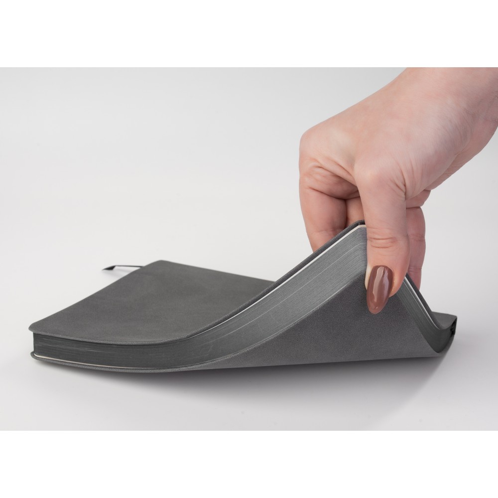 Основной материал напоминает велюр, с характерной тактильностью и гибкостью, такой ежедневник не хочется выпускать из рук.
