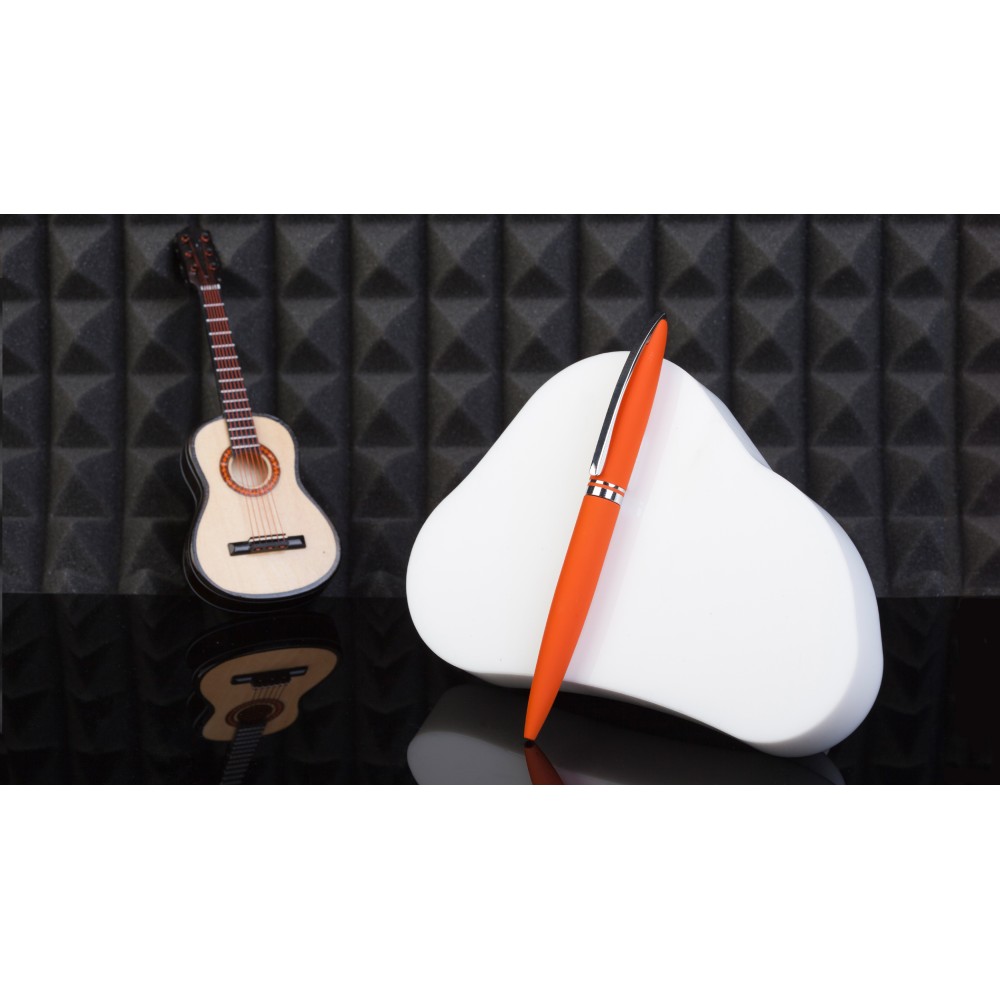 Тонкий цельнометаллический клип подпружинен и имеет ход до 5 мм для удобства зацепления. Деловой имидж ручки подчеркивает солидный вес - 34 г. Матовое прорезиненное покрытие хорошо сочетается с блестящими хромированными элементами.