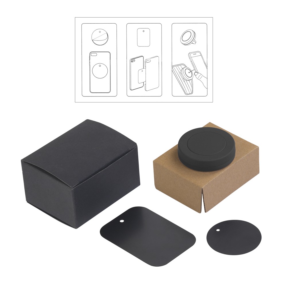 Магнитный держатель используется вместе с ответной металлической пластиной, которая крепится к корпусу устройства (непосредственно на сам смартфон, либо чехол или бампер) на двусторонний скотч (3M).