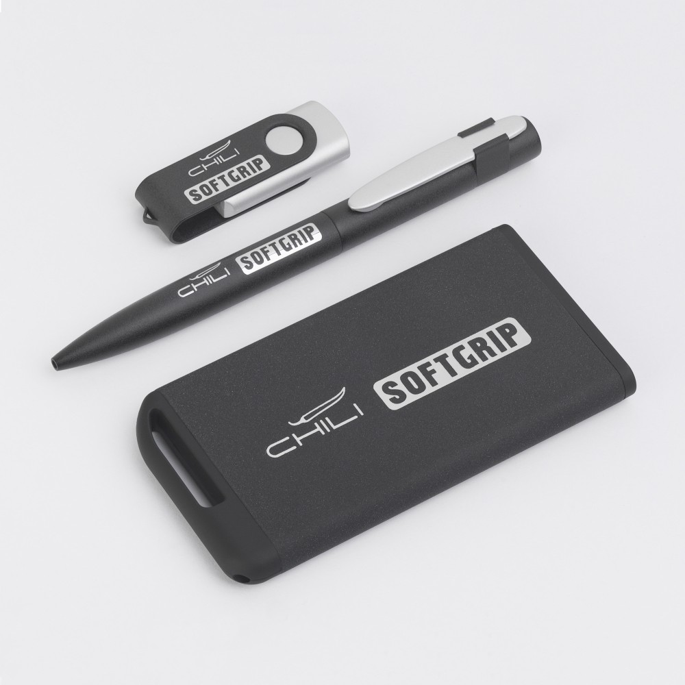 Покрытие soft grip имитирует поверхность камня и имеет легкий массажный эффект + фирменная зеркальная гравировка создают уникальный продукт, не имеющий аналогов на российском рынке сувенирной промопродукции!