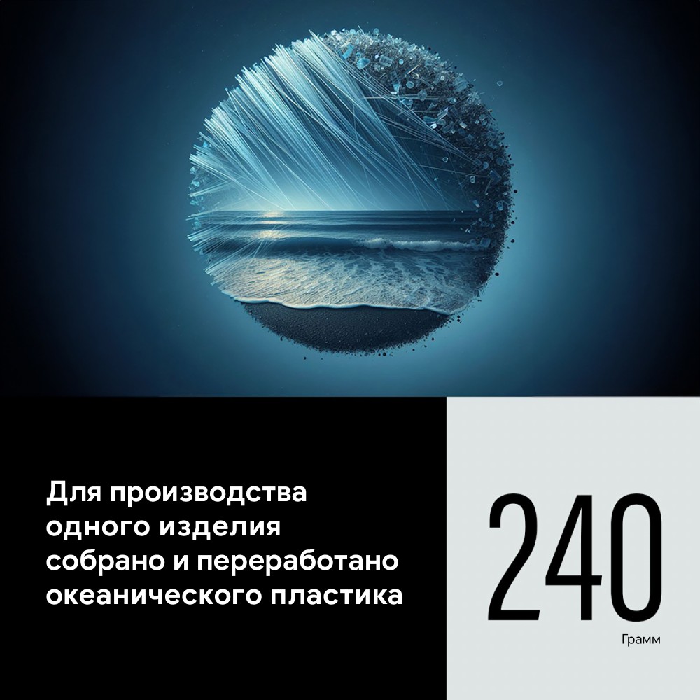Ткань получена из пластика (бутылок) собранного в прибрежных зонах, наиболее подверженных загрязнению. Благодаря прозрачной производственной цепочке путь пластика от места сбора до фабрики легко отследить. Сертификат OCEANCYCLE является знаком качества, он признан во всем мире и подтверждает происхождение сырья.