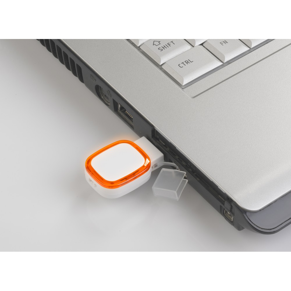 Флеш-карта 16 Гб с подсветкой логотипа, белый с оранжевым