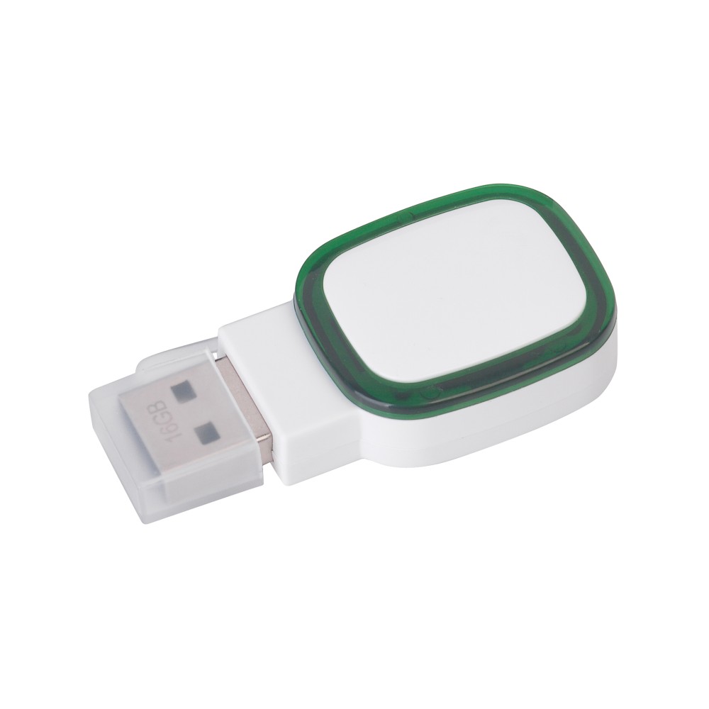 Флеш-карта 16 Гб с подсветкой логотипа, белый с зеленым