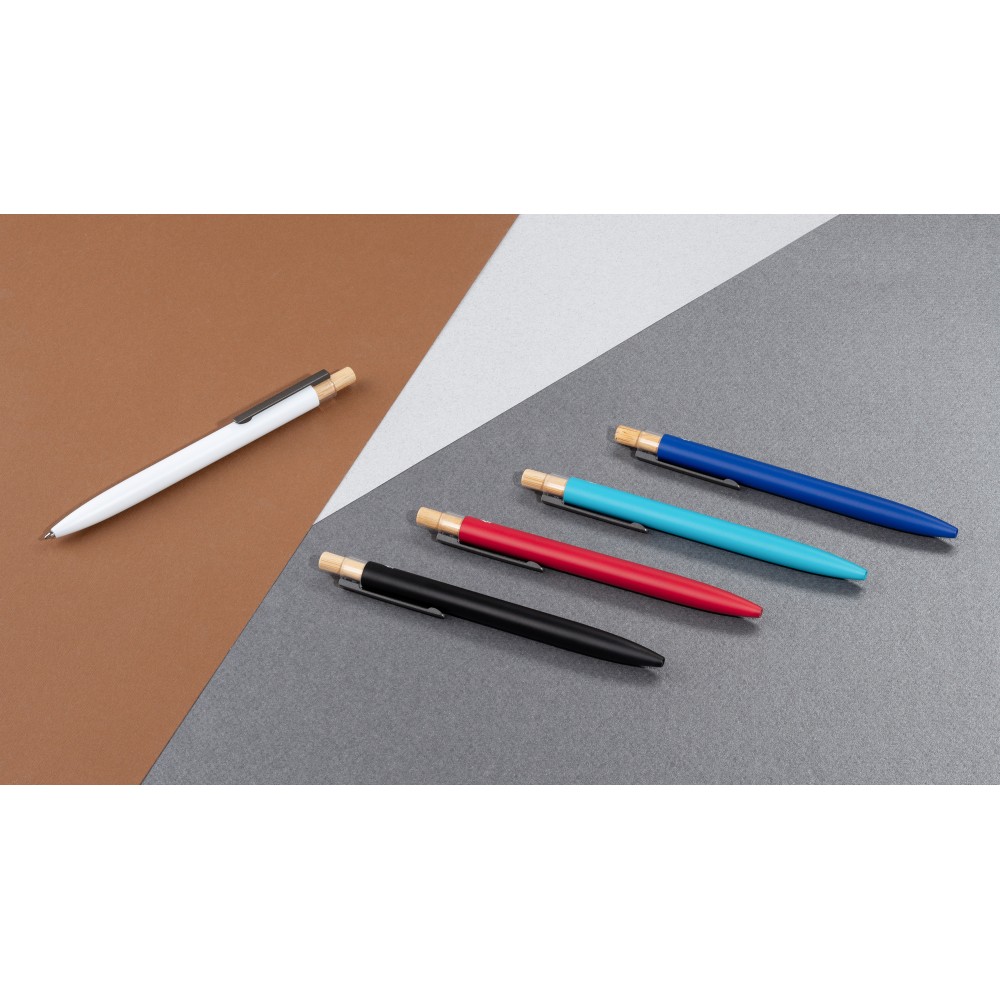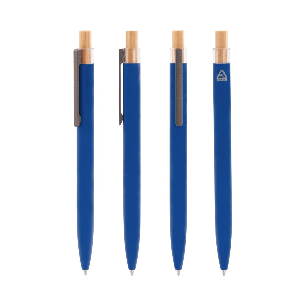 Трендовая эко-ручка, изготовленная из переработанных алюминия и пластика, с кнопкой из бамбука.