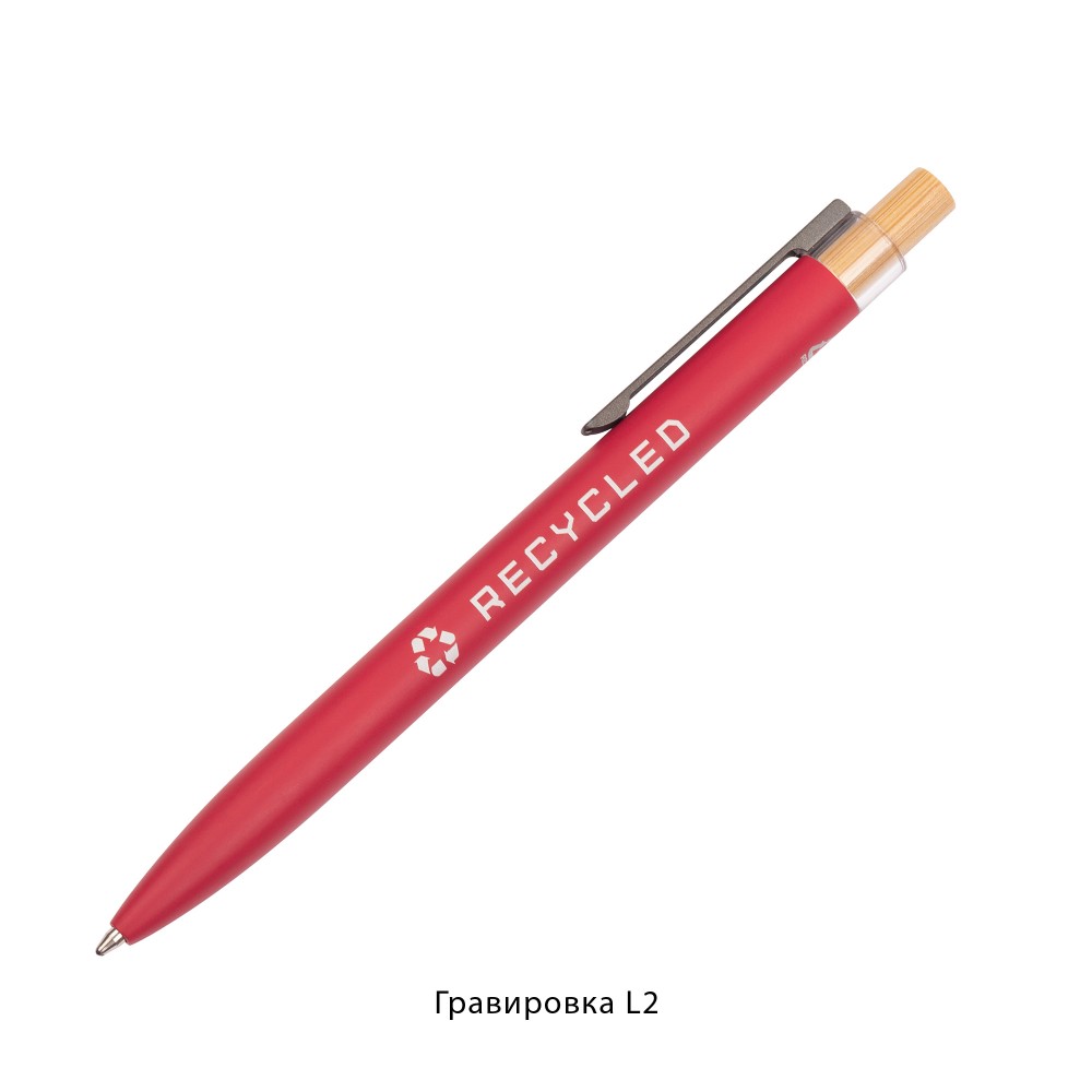 Трендовая эко-ручка, изготовленная из переработанных алюминия и пластика, с кнопкой из бамбука.