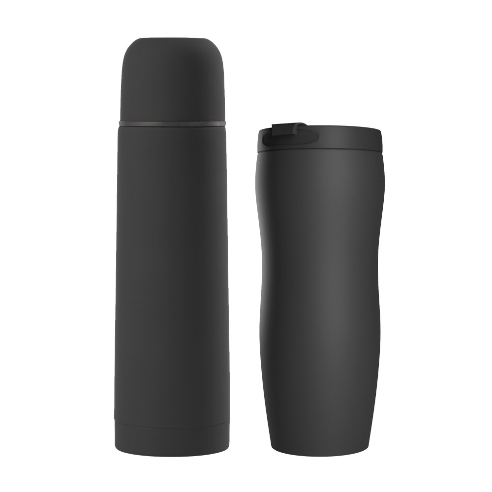 Подарочный набор "Грация" - стильное решение для людей с особым вкусом. Продукция в наборе имеет уникальное прорезиненное напыление с возможностью эффектной гравировки по окружности встык. Обтекаемая и изящная форма термоса "Крит" и термостакана "Монтана" с вашим логотипом привлечет внимание даже самого искушенного потребителя,а функциональность и практичность подарочного набора не позволит ему стоять на полке.