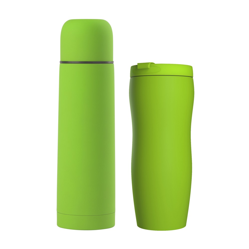 Подарочный набор "Грация" - стильное решение для людей с особым вкусом. Продукция в наборе имеет уникальное прорезиненное напыление с возможностью эффектной гравировки по окружности встык. Обтекаемая и изящная форма термоса "Крит" и термостакана "Монтана" с вашим логотипом привлечет внимание даже самого искушенного потребителя,а функциональность и практичность подарочного набора не позволит ему стоять на полке.