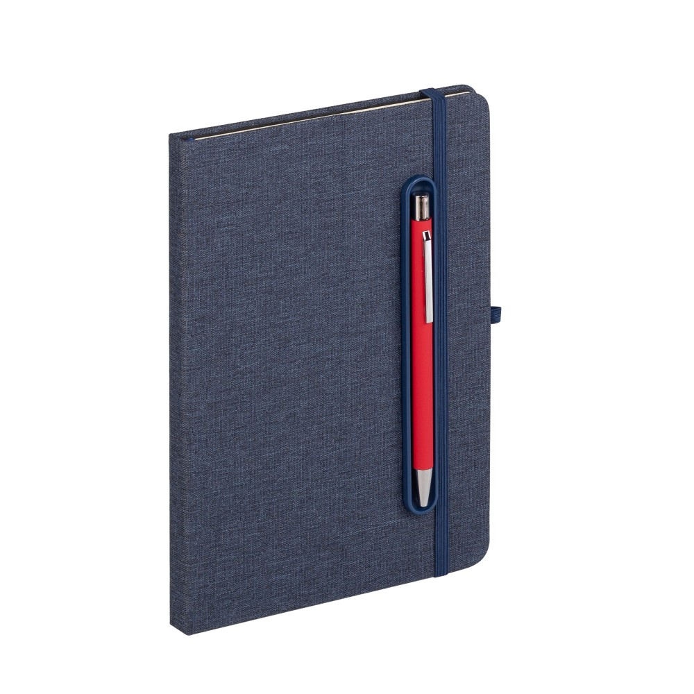 - Блокнот формата А5 с резинкой-фиксатором и встроенным в обложку магнитным держателем для ручки. Внутренний блок состоит из 160 страниц в линейку бумаги плотностью 70 г/м2. Материал обложки изготовлен из переработанного (RPET) пластика. Магниты прочно и надёжно закрепляют металлическую ручку на обложке. Бонус – обложка трансформируется в удобную подставку для смартфона/планшета/ноутбука;