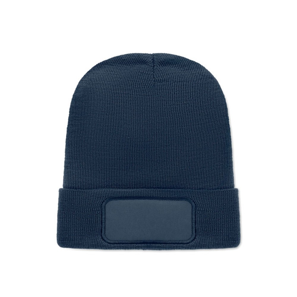 Трикотажная шапка унисекс из мягкого переработанного полиэстера с манжетой и нашивкой.
