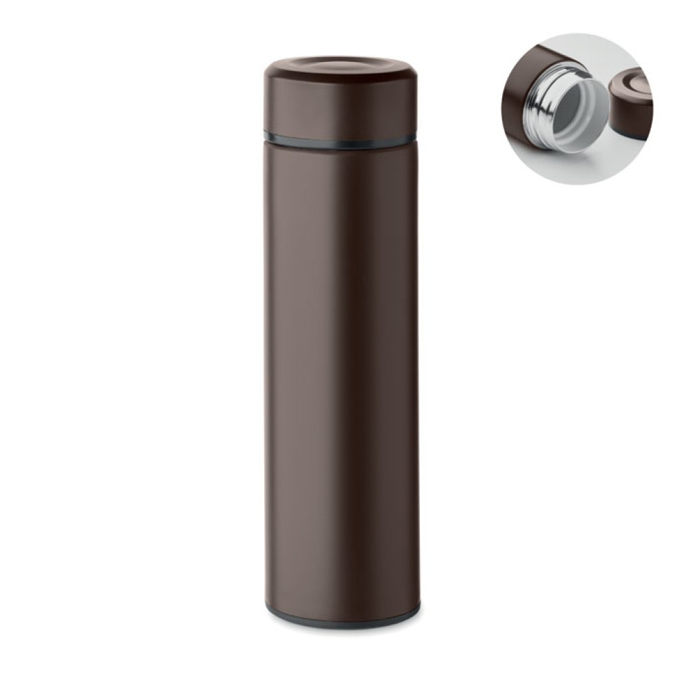 Двустенный термос из переработанной нержавеющей стали (90%) и обычной нержавеющей стали (10%) с внутренней керамической колбой. Герметичен. Объем: 420 мл.