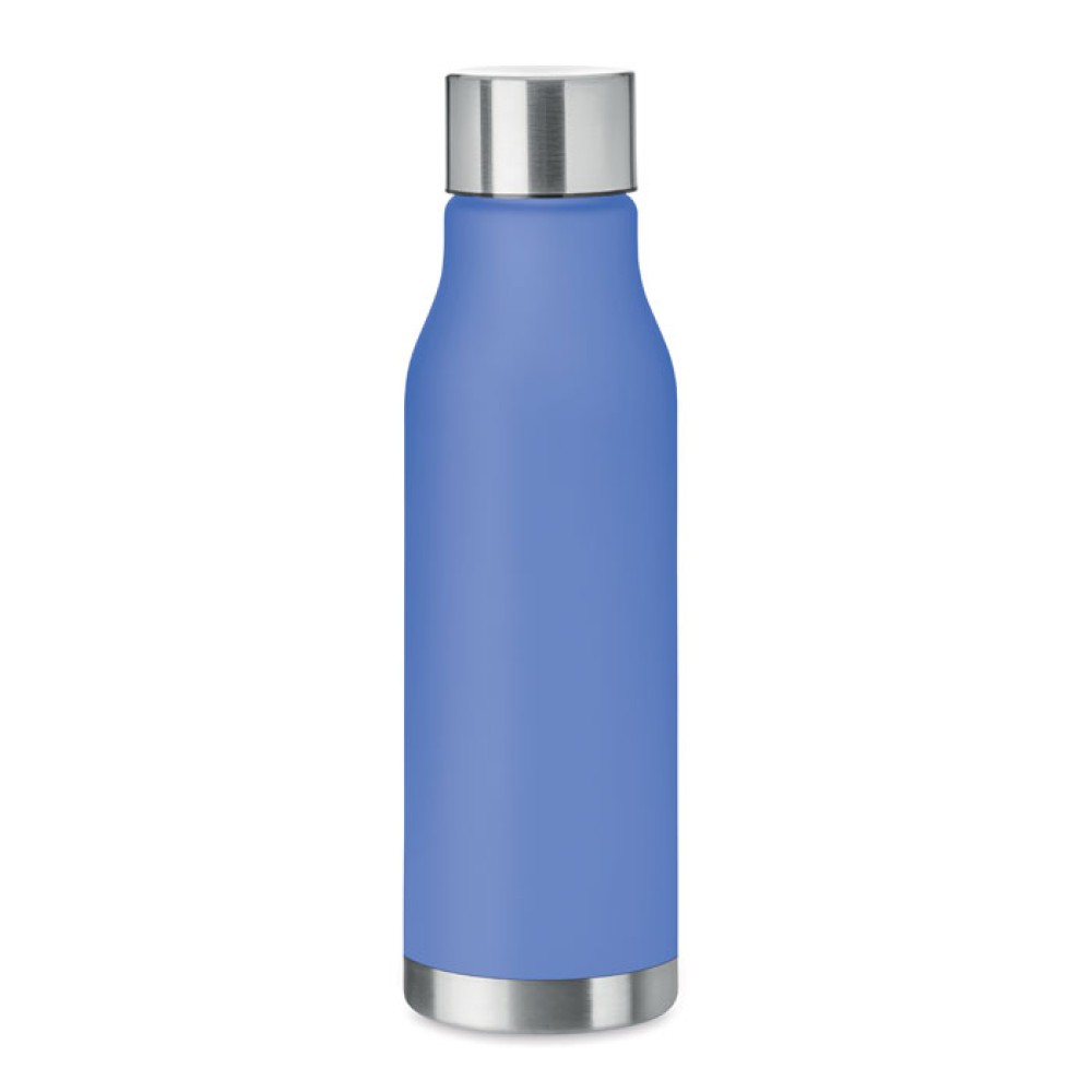 Питьевая пластиковая бутылка (RPET) с прорезиненным покрытием и крышкой из нержавеющей стали и пластика с внутренней стороны (RPET), а также силиконовым кольцом. Полная герметичность. Емкость: 600 мл.Не протекает.