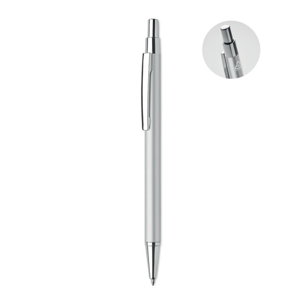 Кнопочная шариковая ручка из переработанного алюминия. Синие чернила.