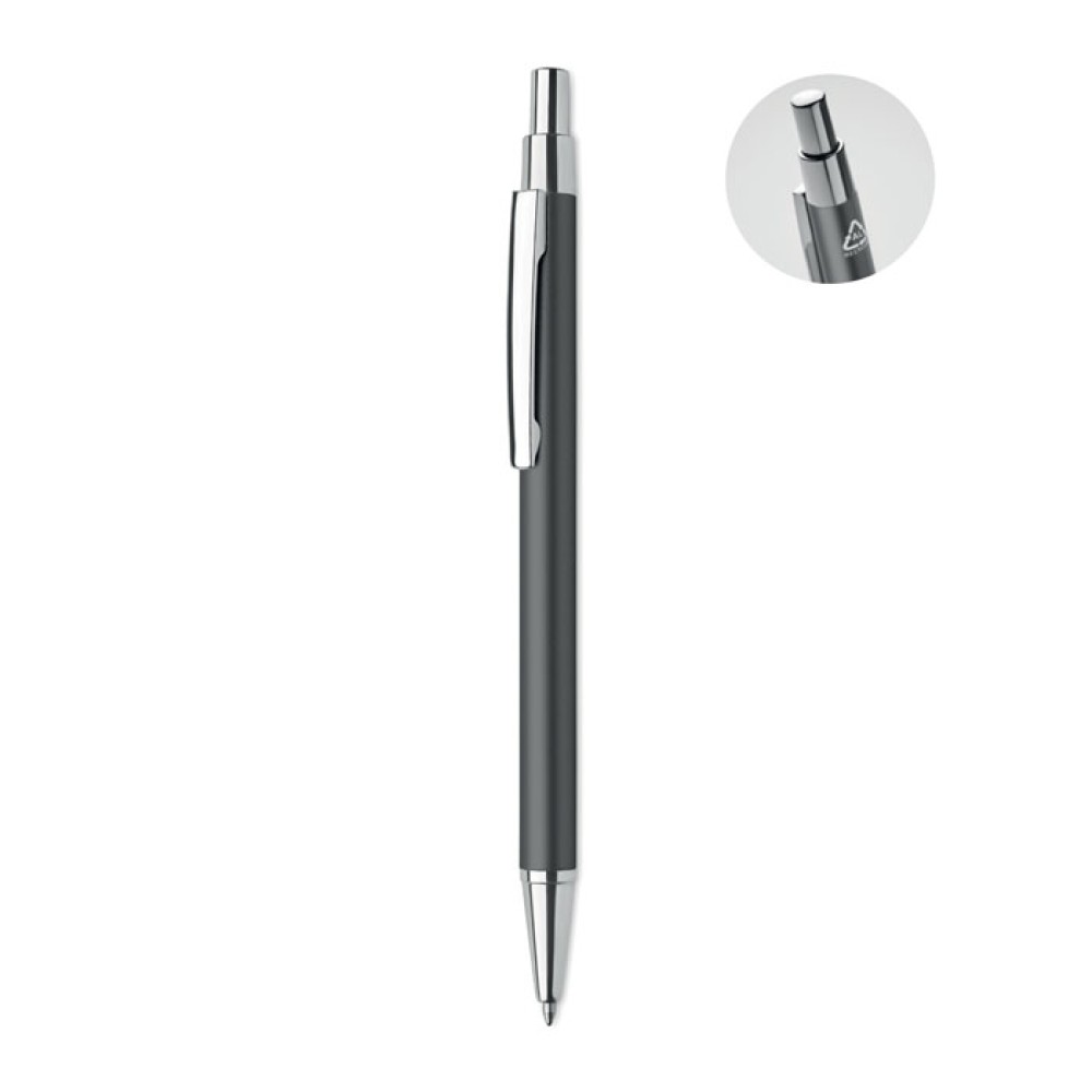 Кнопочная шариковая ручка из переработанного алюминия. Синие чернила.