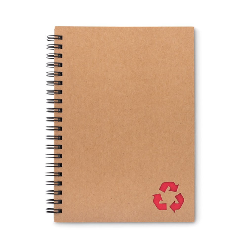 Блокнот на кольцах на 70 листов. Обложка из переработанного картона. Блок бумаги- это каменная бумага. Изготовлена из смеси натурального камня, карбоната кальция, известняка и полиэтилена высокой плотности.