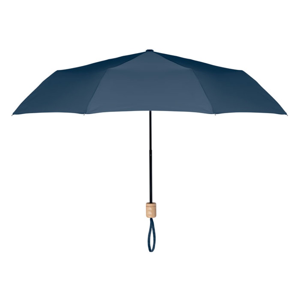 Зонт складной 21 дюйм. Купол из эпонжа 190T. RPET. Каркас и спицы черные . Ручка деревянная . Ручное открытие и закрытие. Чехол в комплекте.