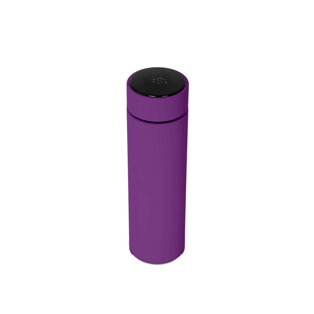 Термос из нержавеющей стали, покрытый цветным soft touch, с крышкой, в которой встроен термометр и LED дисплей, показывающий температуру внутри термоса. Объем: 500 мл. Упаковка: каждый термос в крафт коробке.