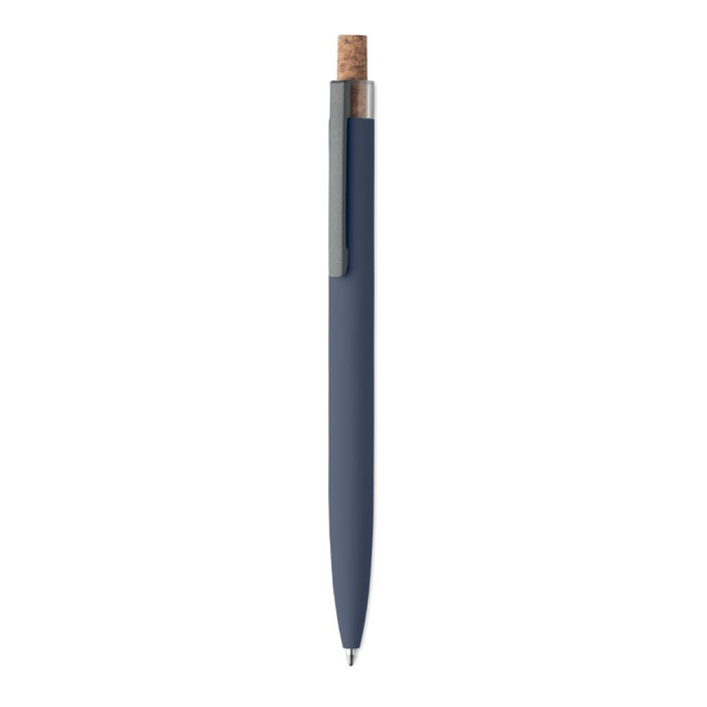 Шариковая ручка из переработанного алюминия с кнопкой из пробки и металлическим зажимом. Синие чернила.