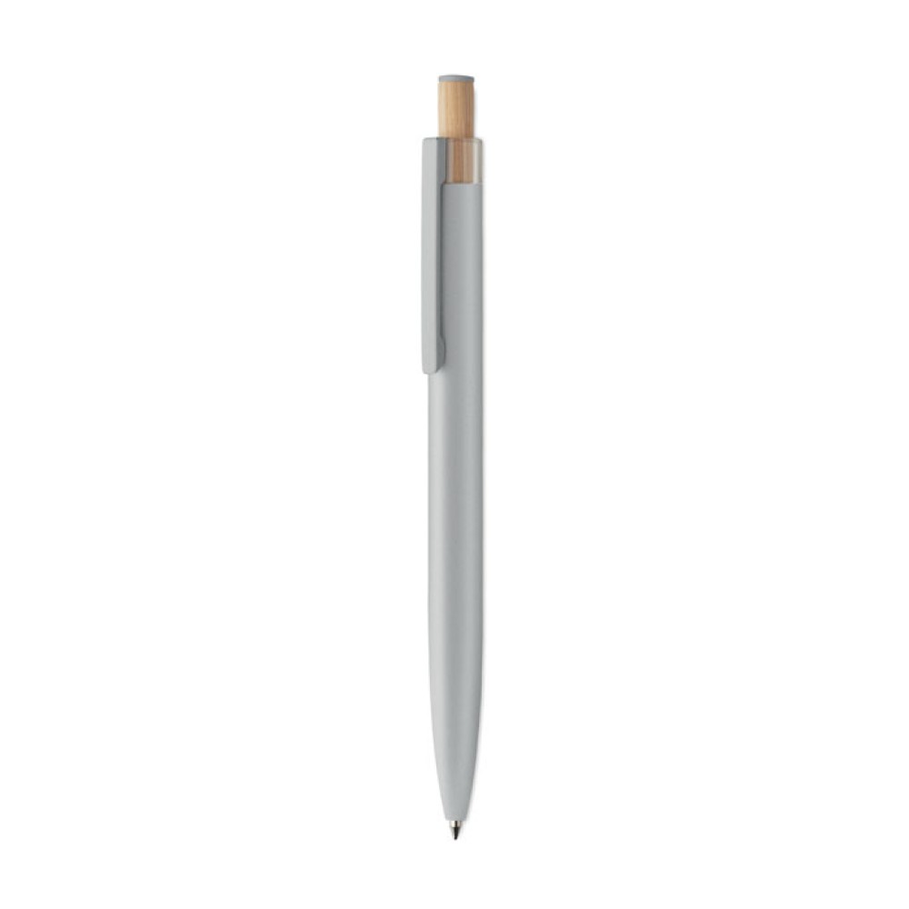 Шариковая ручка из переработанного алюминия с кнопкой из бамбука с цветными деталями и металлическим клипом. Синие чернила.