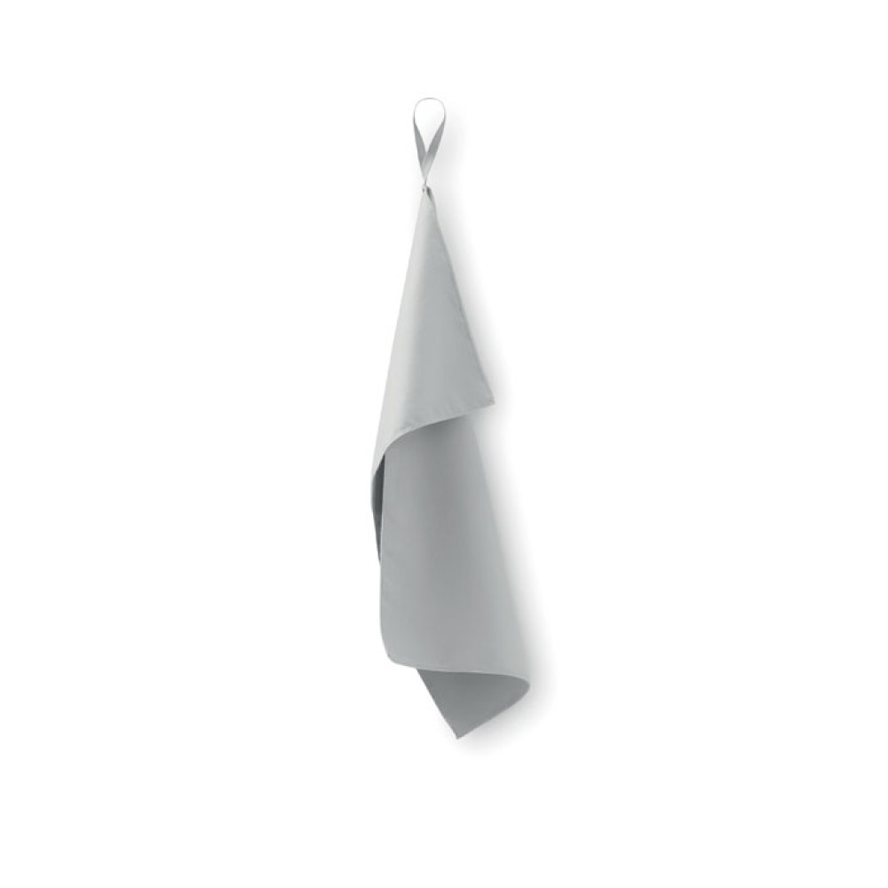 Полотенце из микрофибры (90% полиэстера и 10% полиамида) с эластичной петлей для подвешивания. Легкое и быстросохнущее. Размер 30 см x 50 см.