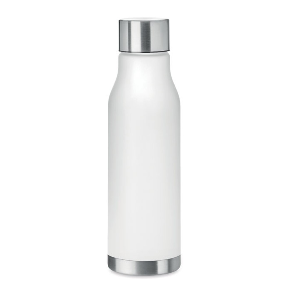 Питьевая пластиковая бутылка (RPET) с прорезиненным покрытием и крышкой из нержавеющей стали и пластика с внутренней стороны (RPET), а также силиконовым кольцом. Полная герметичность. Емкость: 600 мл.Не протекает.