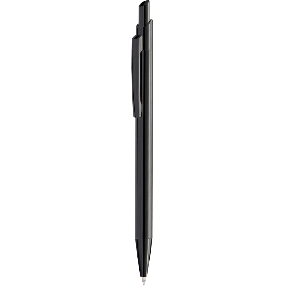 Металлический корпус с благородным матовым блеском. Наконечник и кнопка пластиковые, хромированные.