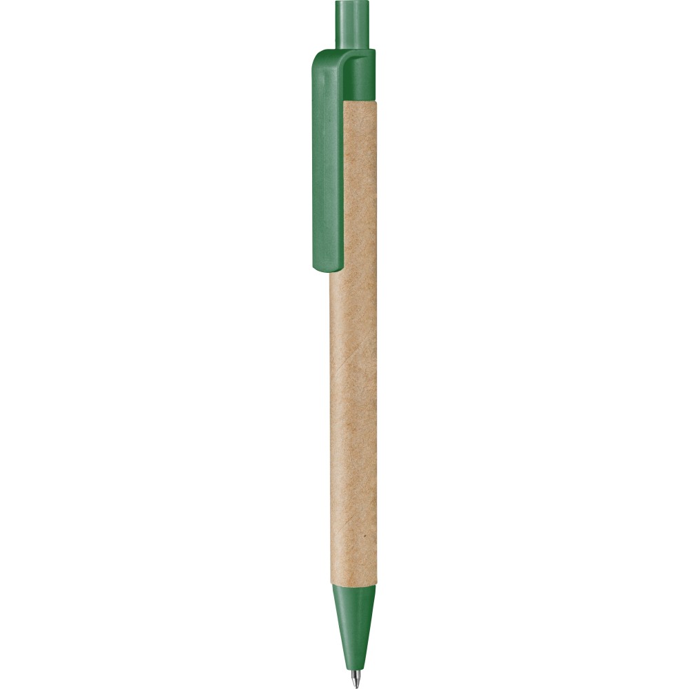 Бумажная ручка. Наконечник, клип и кнопка пластиковые.