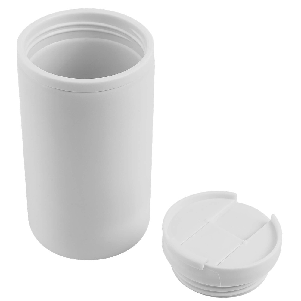 Внутренняя стенка - пластик;Внешняя стенка - нержавеющая сталь AISI 201;Крышка - пластик.Крышку можно мыть в посудомоечной машине, корпус рекомендуем мыть вручную.Температурные характеристики:При температуре окружающей среды +20°Сначальная температура — 70°С (рекомендуемая температура для пластиковой колбы)через 1 час — 55°Счерез 2 часа — 40°СВнимание: термокружка не является полностью герметичной и не предназначена для долгого удержания высокой температуры.Во избежание протекания, рекомендуем использовать кружку в вертикальном положении.
