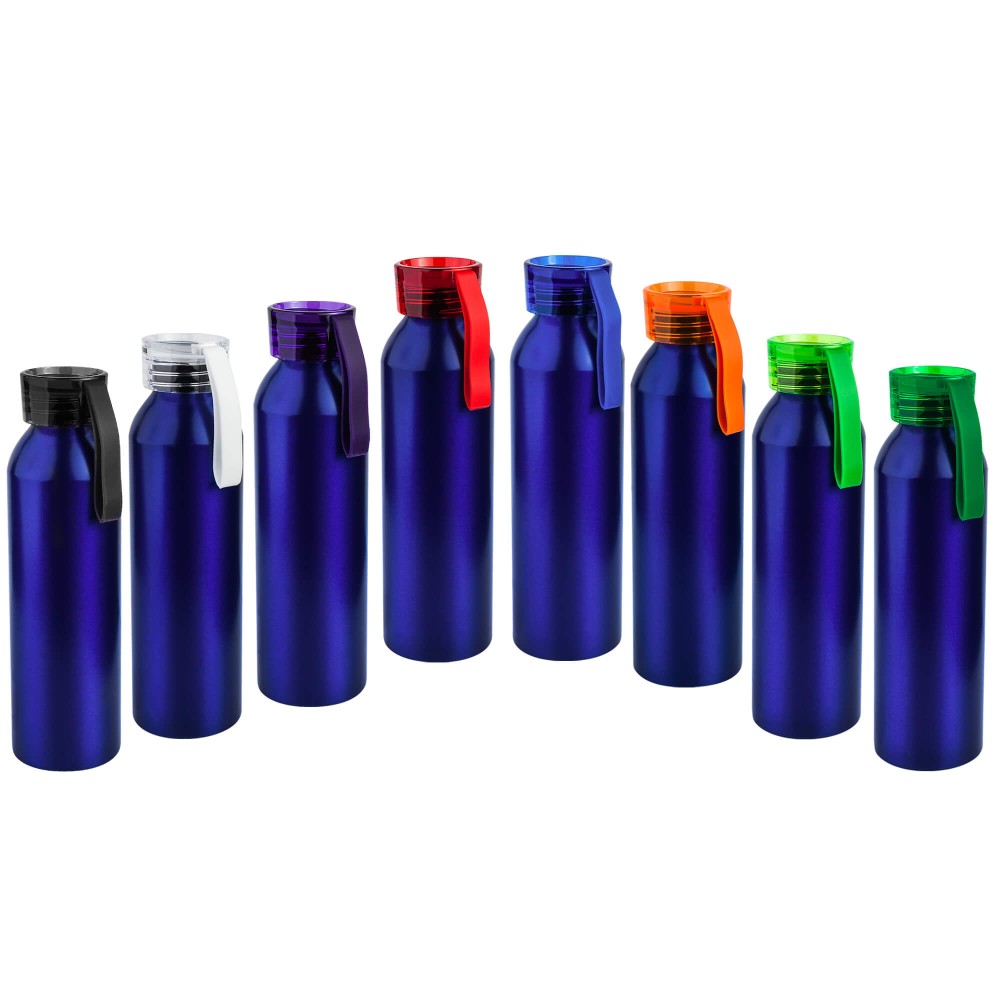 Алюминиевая матовая бутылка с пластиковой крышкой.