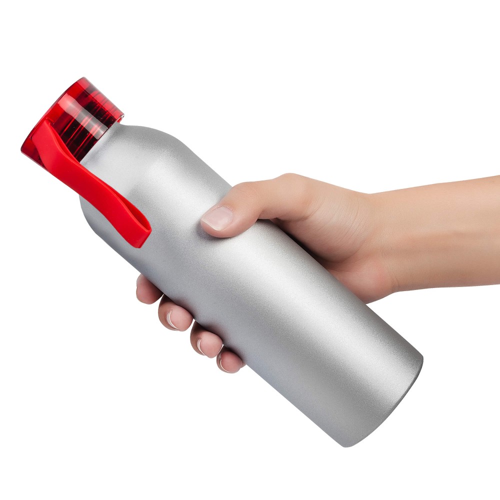 Бутылка для воды VIKING SILVER 650мл. Серебристая с красной крышкой 6141.03