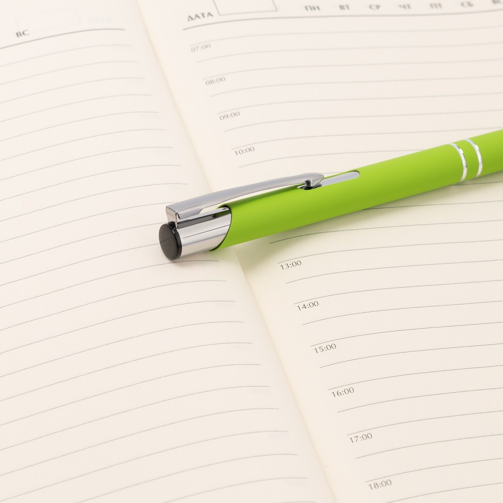 Классическая ручка в шелковистом покрытии Soft Touch станет прекрасным инструментом для письма. Хромированные детали – два декоративных кольца и функциональный надежный клип.—