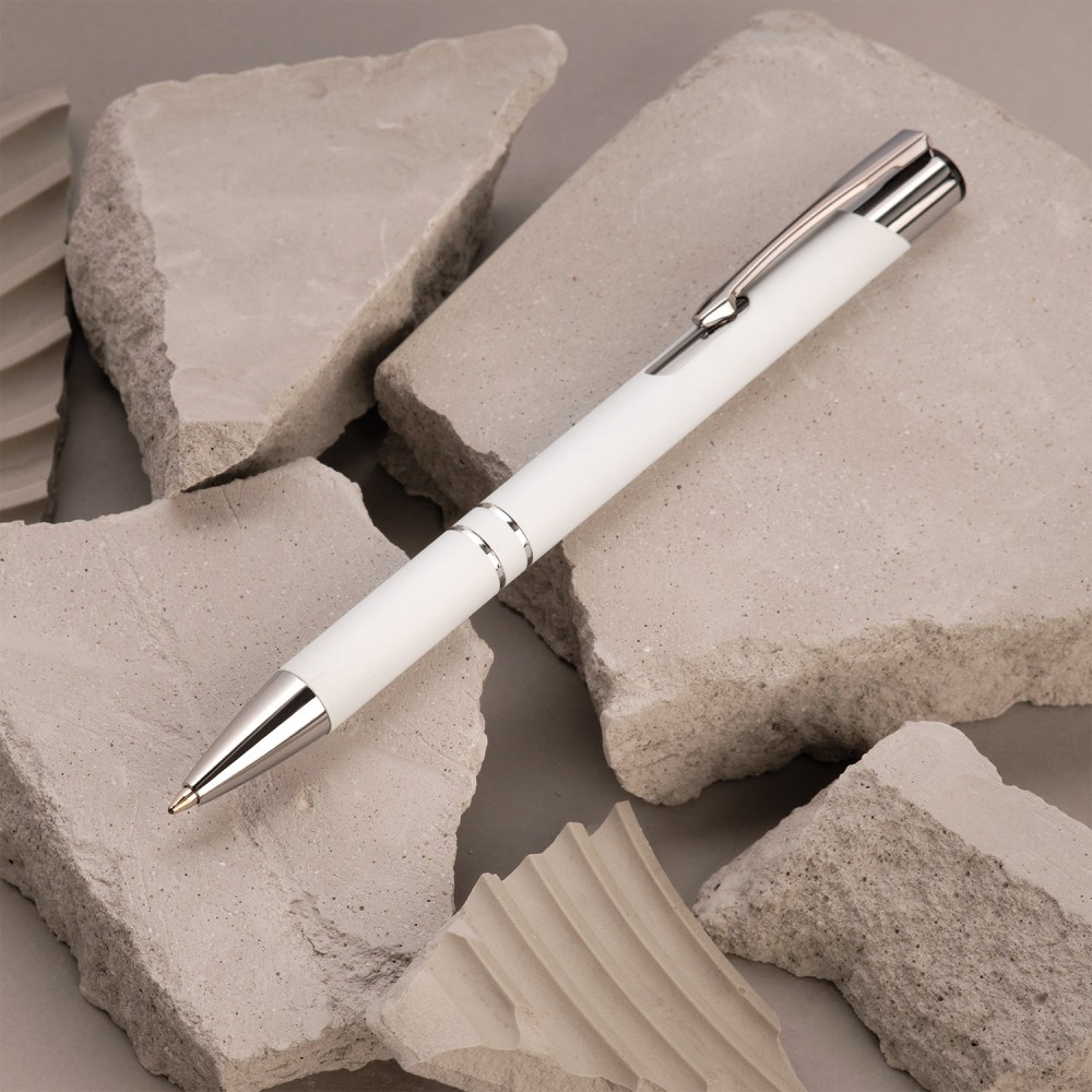 Классическая ручка в шелковистом покрытии soft touch станет прекрасным инструментом для письма. Хромированные детали – два декоративных кольца и функциональный надежный клип.