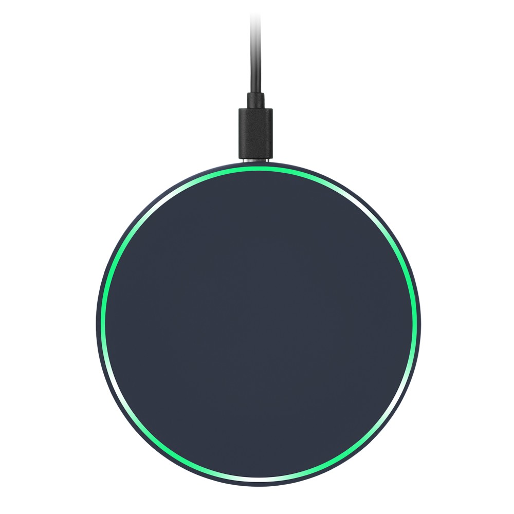 Беспроводное зарядное устройство 15W с подсветкой и покрытием soft-touch. Встроенная LED-панель позволяет создать эффектную подсветку логотипа посредством лазерной гравировки, удачно завершая композицию аксессуара.