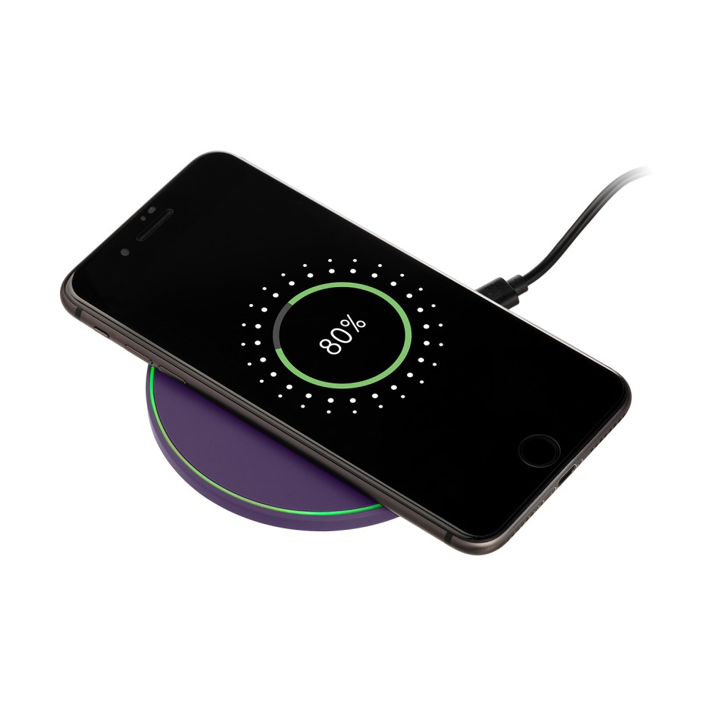 Беспроводное зарядное устройство с подсветкой 15W Аурис (Auris), фиолетовое