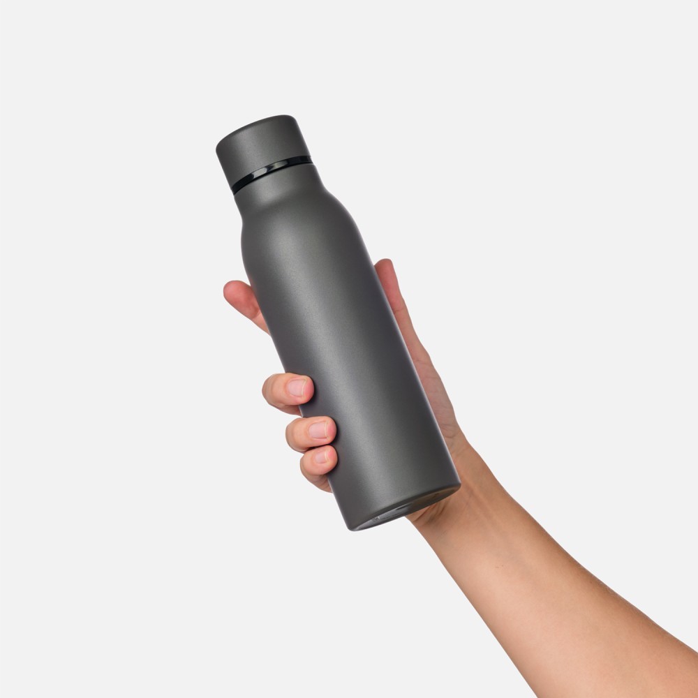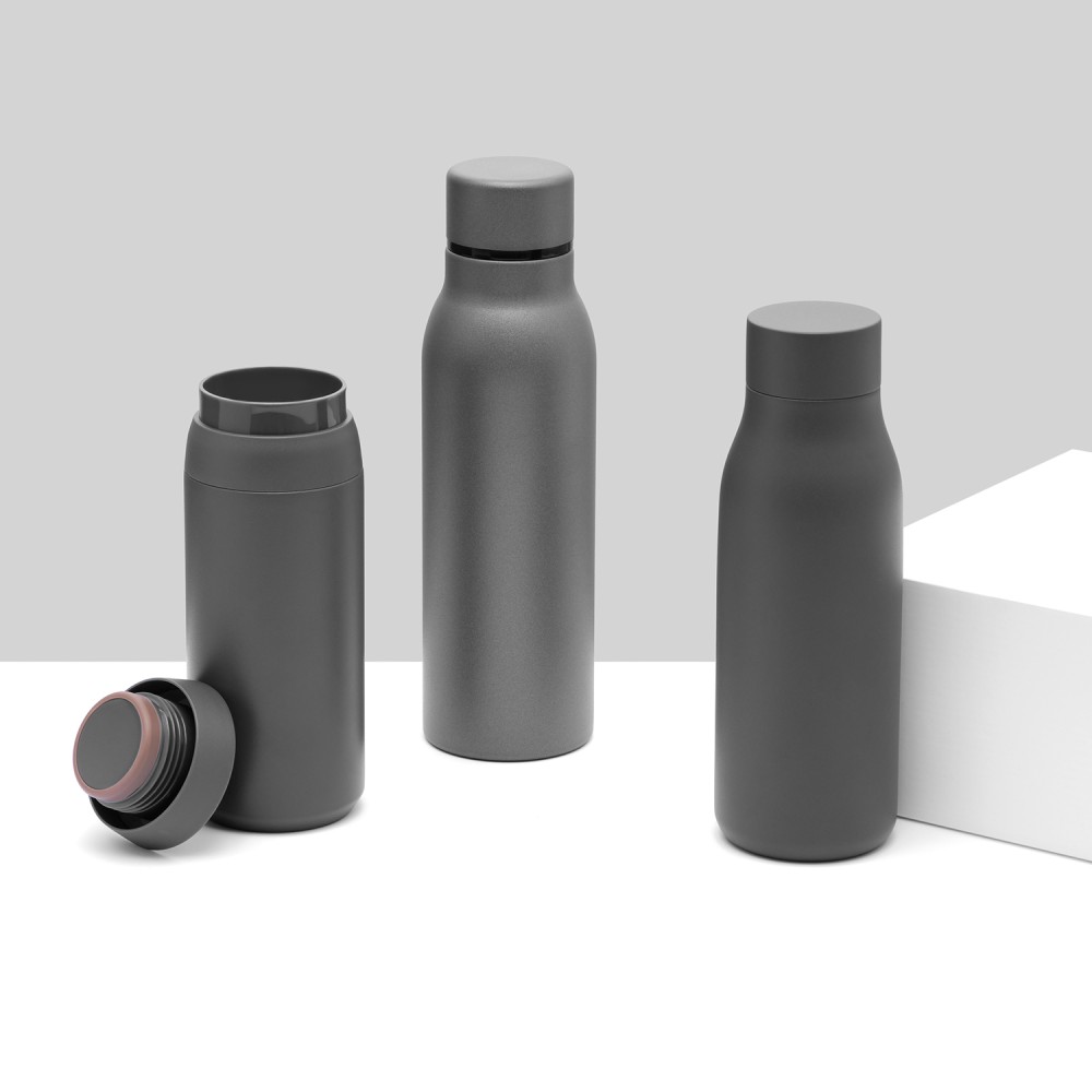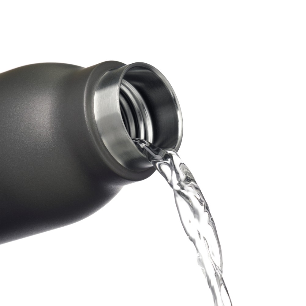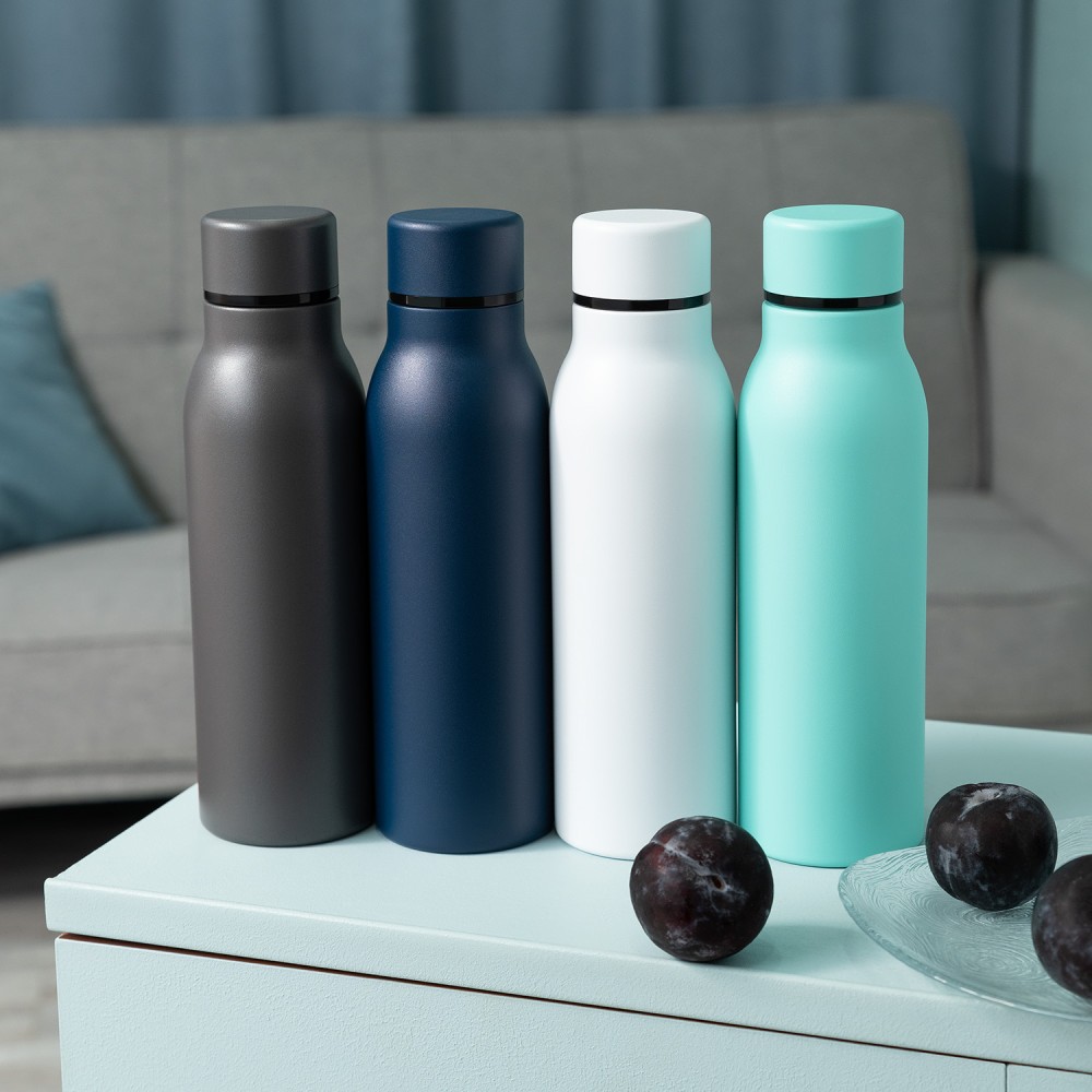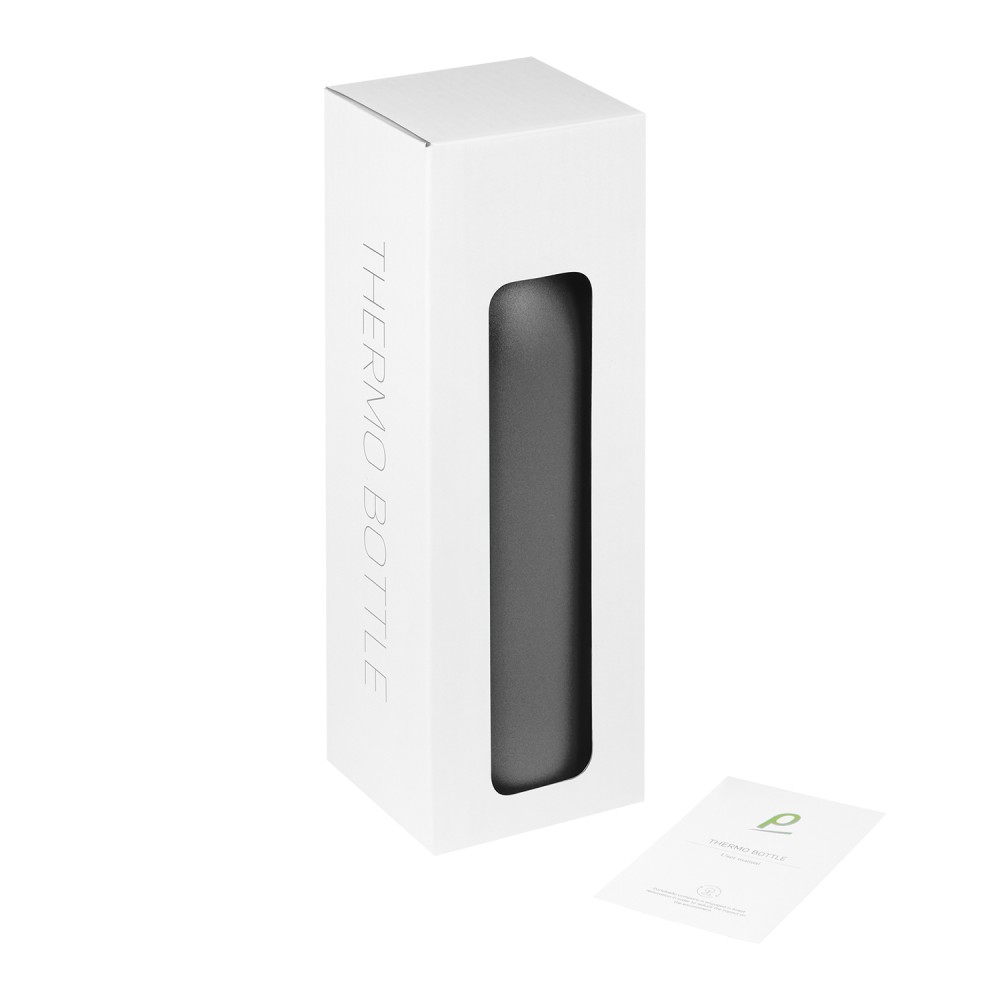 Термобутылку классической формы удобно брать с собой в офис, спортзал, на пробежку или в поход. Крышка в цвет корпуса, полностью литой корпус бутылки, вакуумная герметичная конструкция из двухслойной высоколегированной стали марки 304, порошковое покрытие корпуса и крышки.