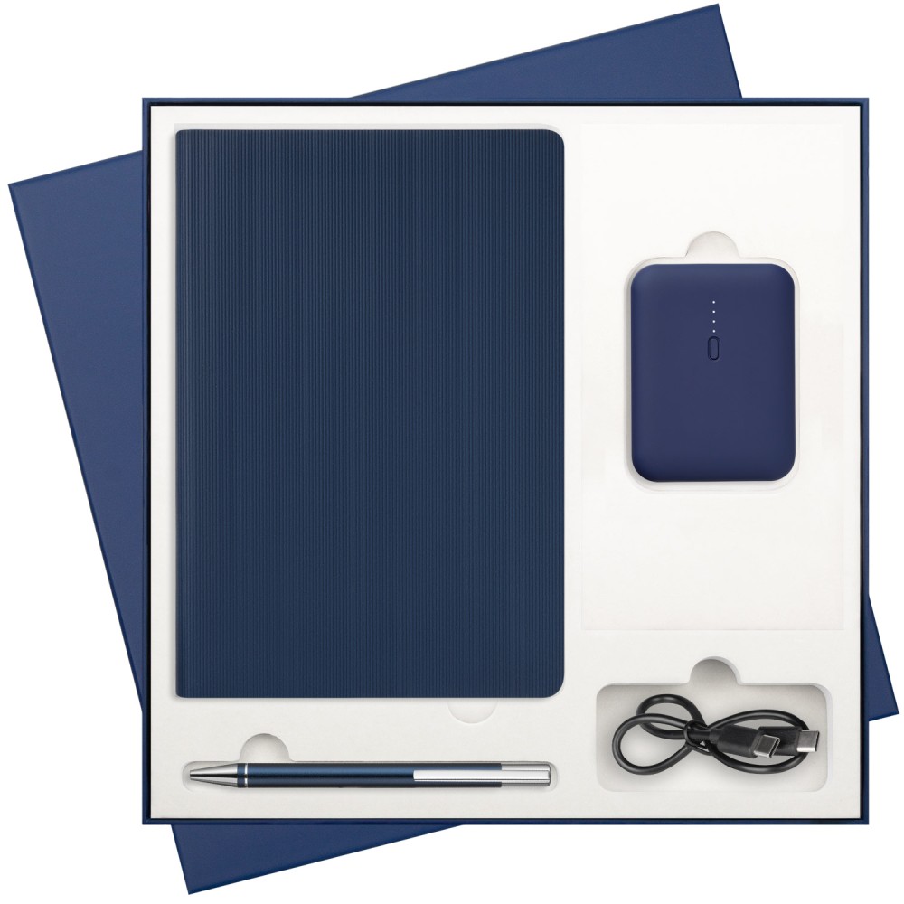Подарочный набор Рейн (Rain), синий (ежедневник, ручка, аккумулятор)