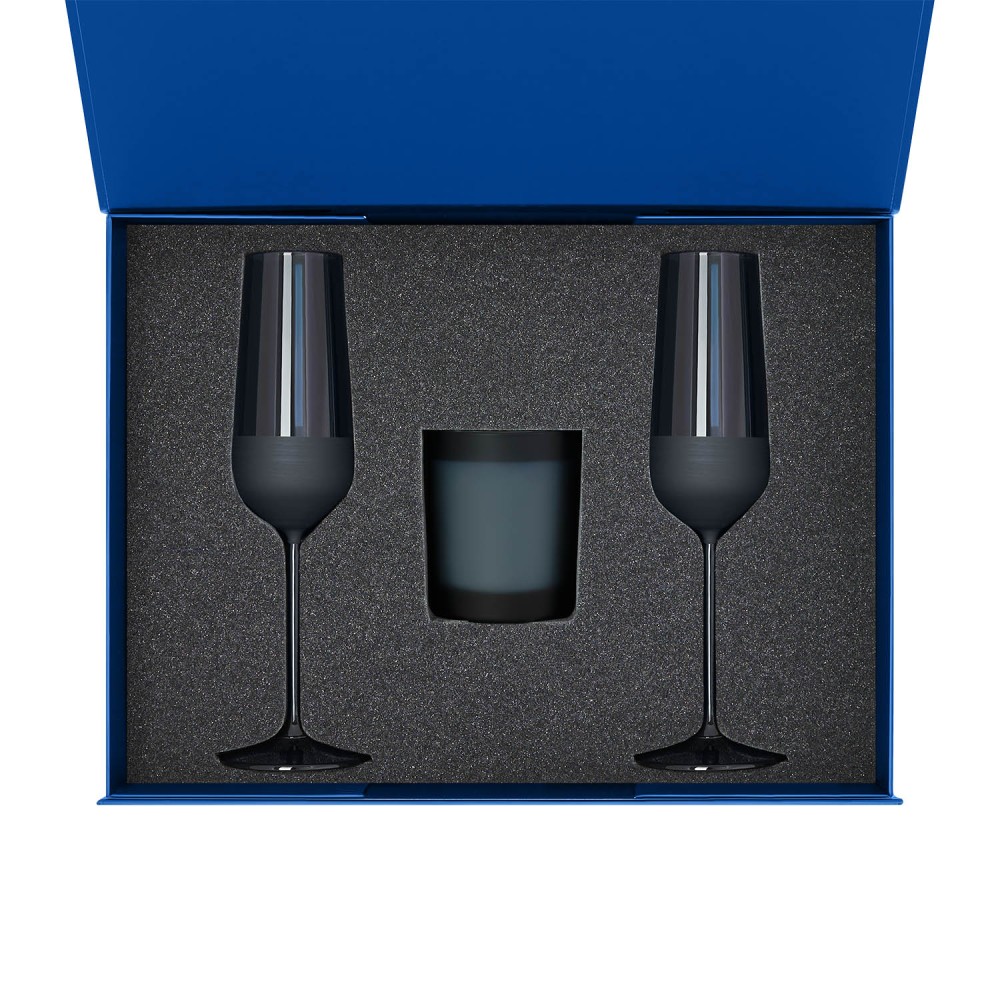 Технические характеристики Подарочный набор свеча Энигма (Enigma) + 2 бокала для шампанского Сапфир (Sapphire) в синей коробке