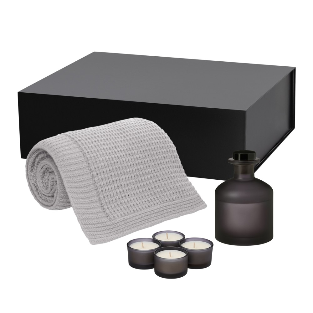 Подарочный набор Сенто (Sento), Мальта Софт (Malta Soft), серый (свеча, диффузор, плед)