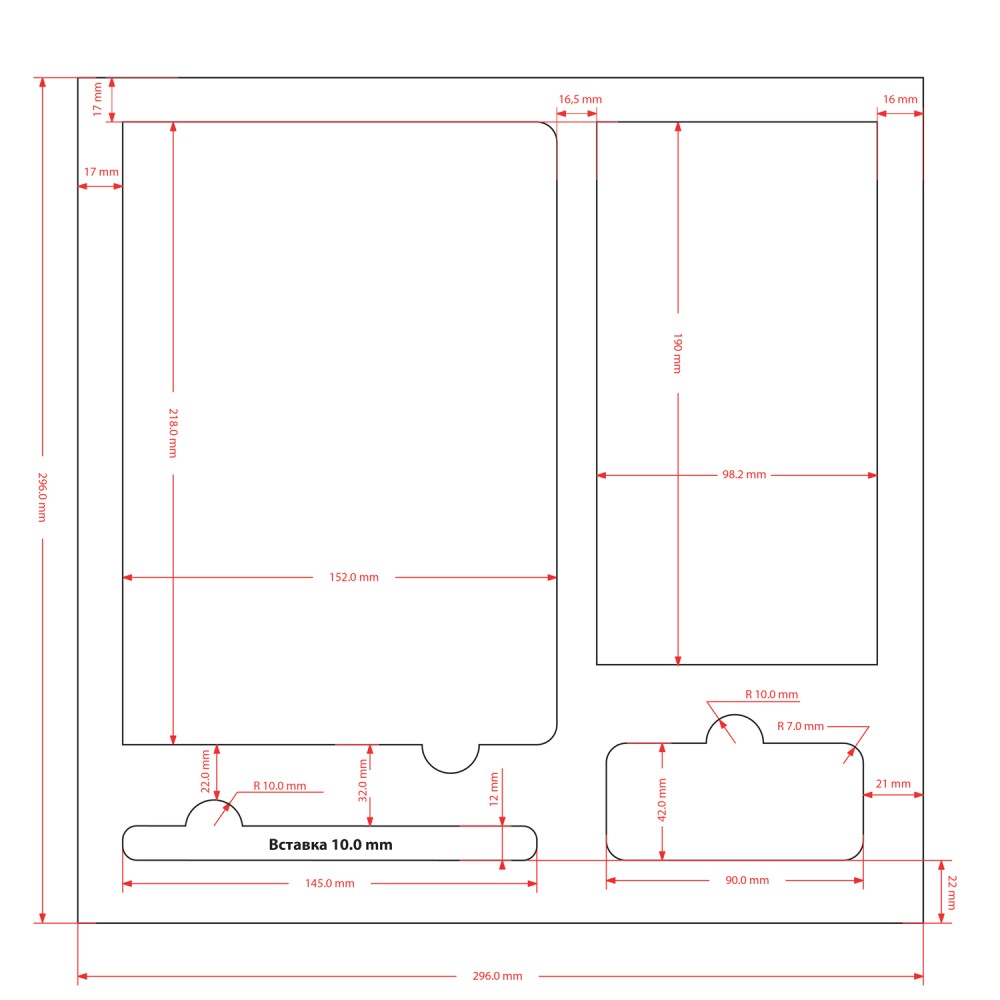 дно: 299х299 мм