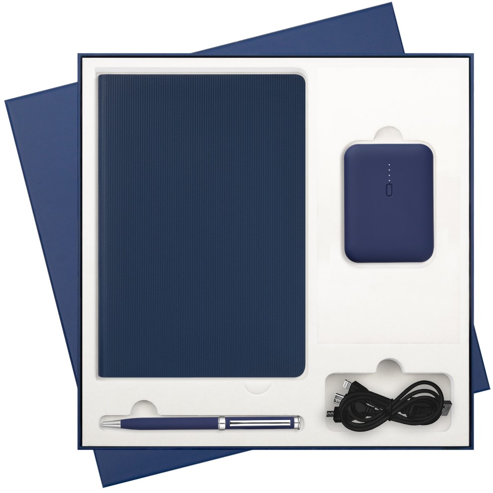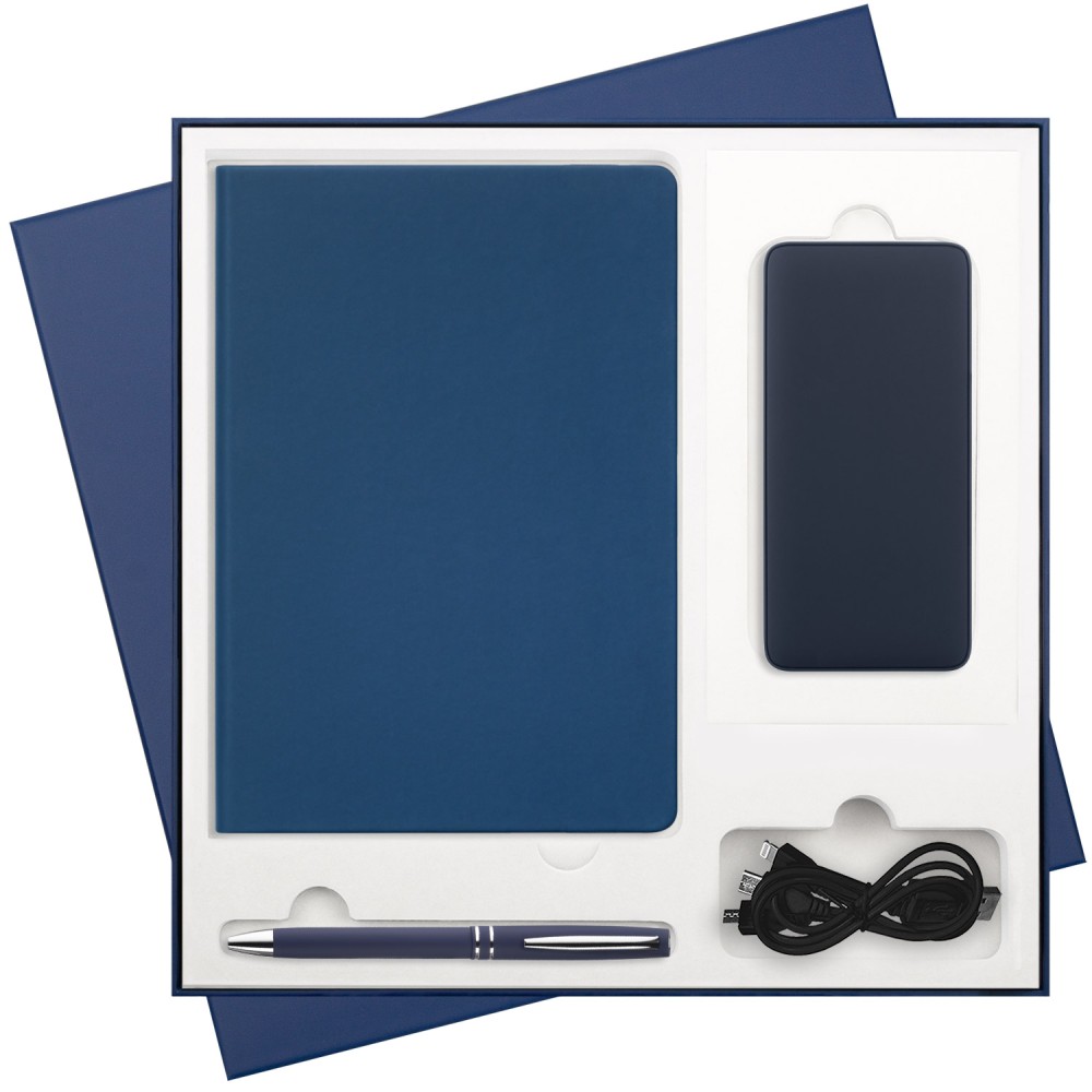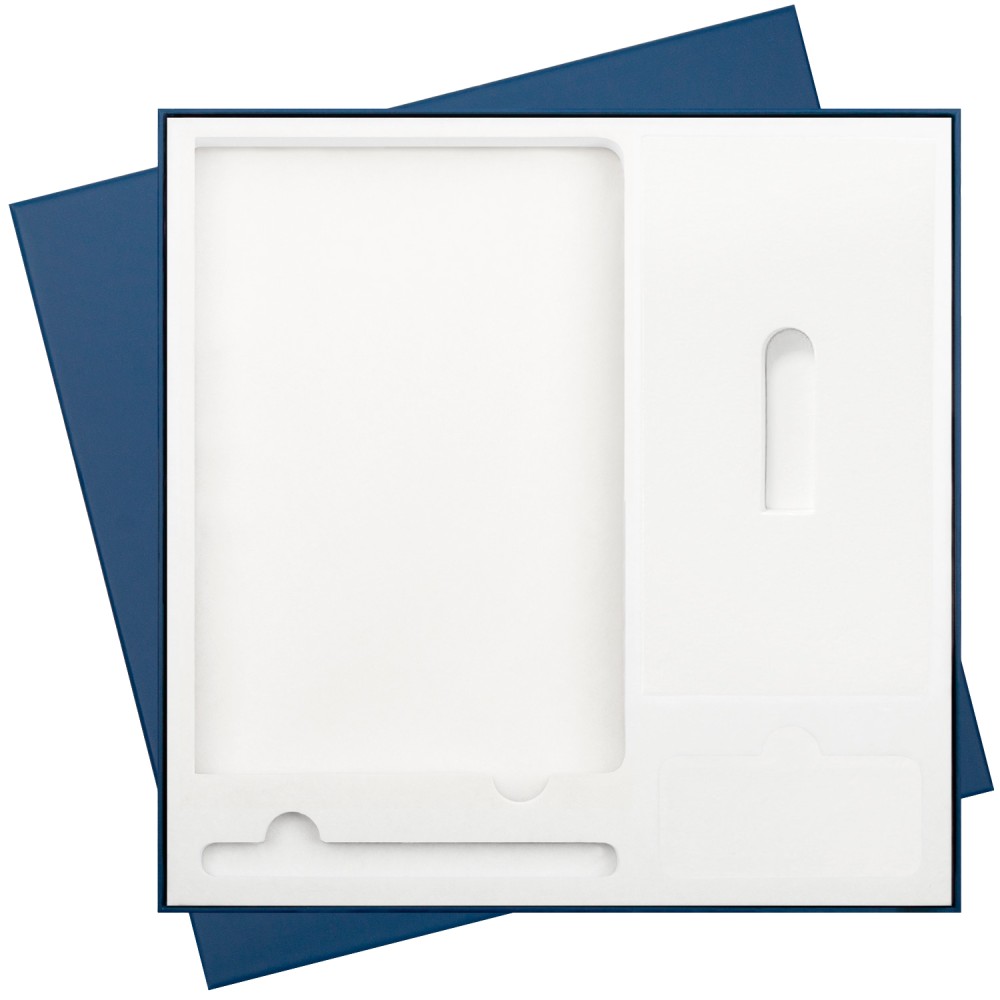 Подарочная коробка с ложементом для ежедневника, ручки и аккумулятора, синяя (под съемные ложементы)