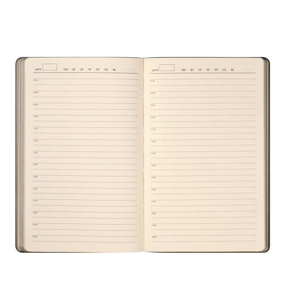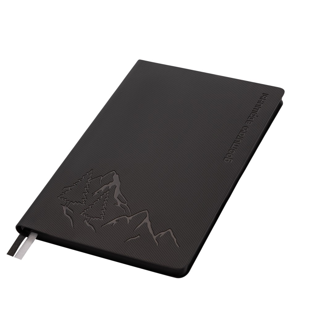 Глубокий, насыщенный цвет обложки гармонично сочетается с матовыми серыми форзацем и нахзацем. Скругленные уголки страниц и матовый срез блока, идеально подобранный в тон обложке, добавляют изысканности.