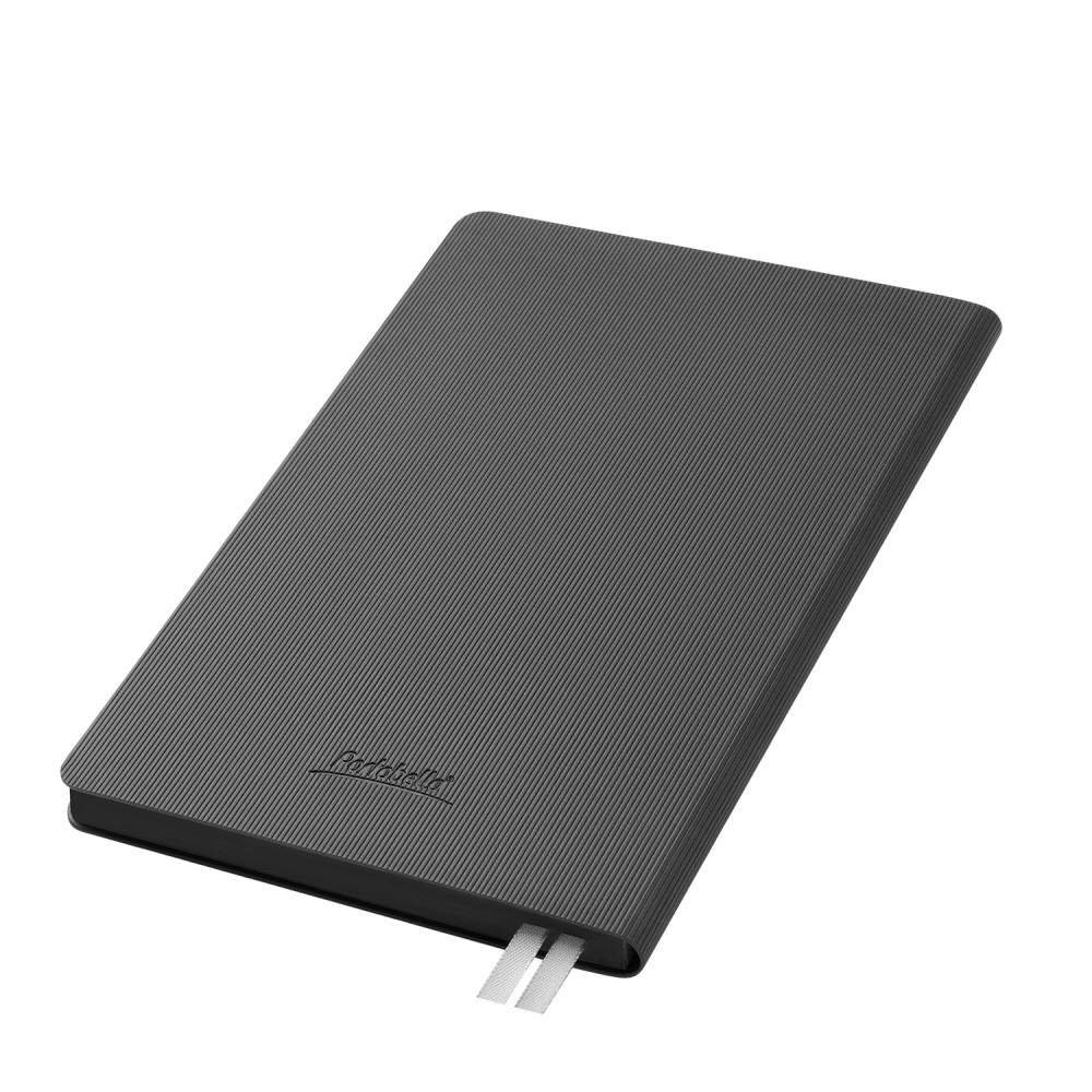 Недатированный ежедневник в стильном лаконичном сером цветовом решении. Цветовая палитра составлена из природных приглушенных тонов. Гибкая матовая обложка со скругленными уголками выполнена из искусственной кожи, имитирующей покрытие в стиле Hi-Tech. Переплетный материал с вертикальным рифлением, бархатистый, со слегка прорезиненным эффектом. За счет интересной рельефной фактуры прослеживается игра цвета при перемене освещения. Цвет – темно-серый, плотный, однородный. Создает органичный тандем с матовыми форзацем и нахзацем серого цвета. Срез матовый, в тон обложки. Страницы со скругленными уголками приятного глазу теплого светло-кремового цвета. Выполнены из гладкого шелковистого офсета. Ежедневник дополнен двойным атласным ляссе из лент серого цвета, имеющих глянцевый отлив. Упаковка: нет (без упаковки, без стикеров).