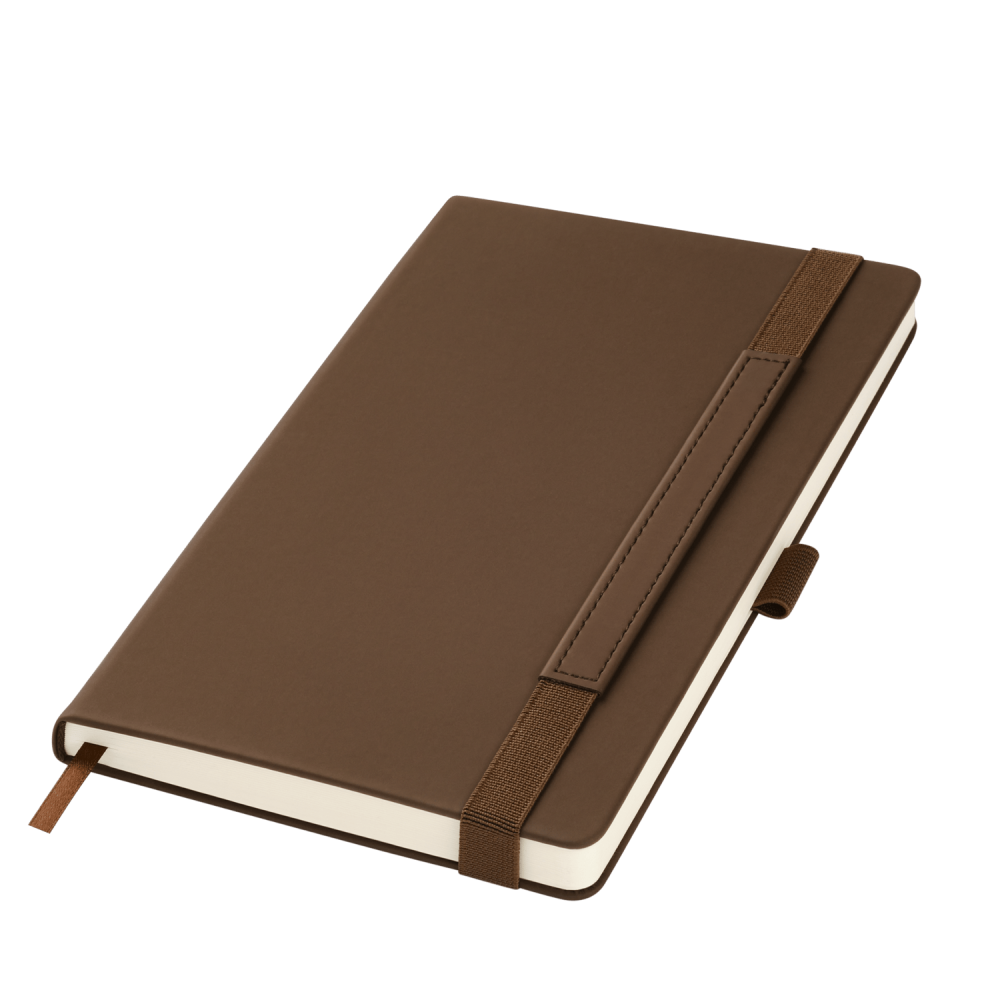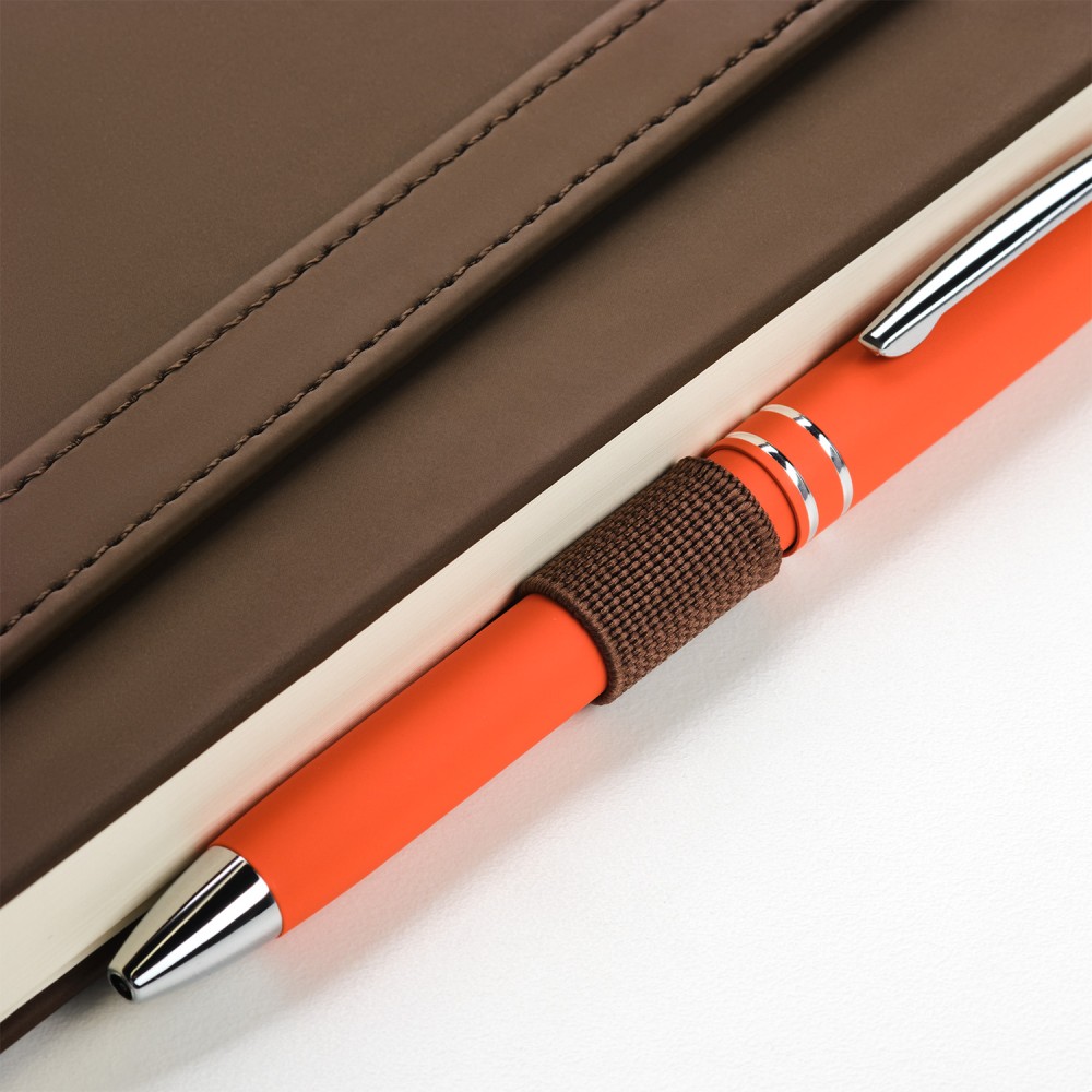 Вертикальная резинка-фиксатор с вставкой из ПУ-материала обложки и петелька под ручку, в цвет обложки