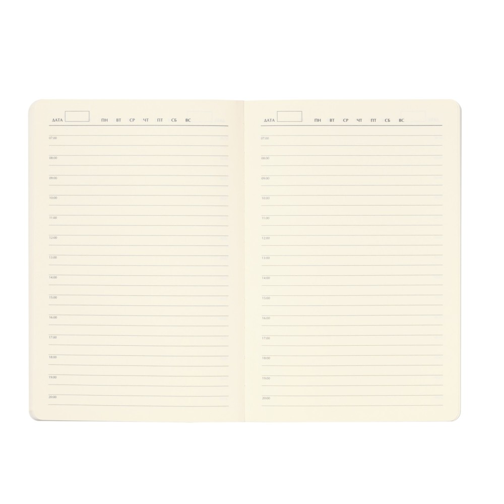 Форзац и нахзац, выполненные в тон обложки, создают гармоничный и целостный образ. Гладкие, шелковистые страницы светло-кремового оттенка со скругленными уголками дарят ощущение тепла и уюта, приглашая вас окунуться в мир вдохновения. Контрастный матовый серый срез добавляет ежедневнику нотку современности.