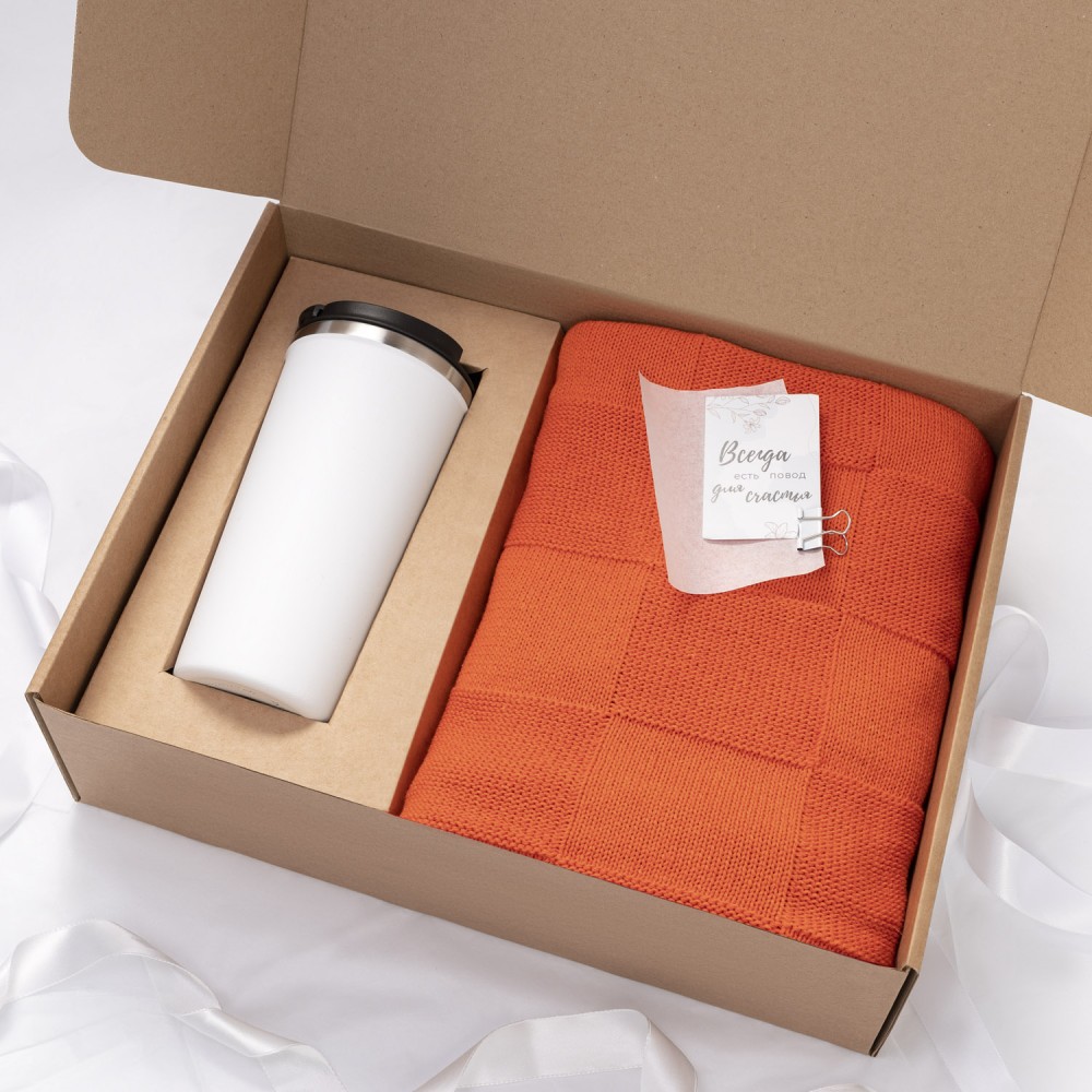 Плед Cella вязаный, оранжевый (без подарочной коробки)
