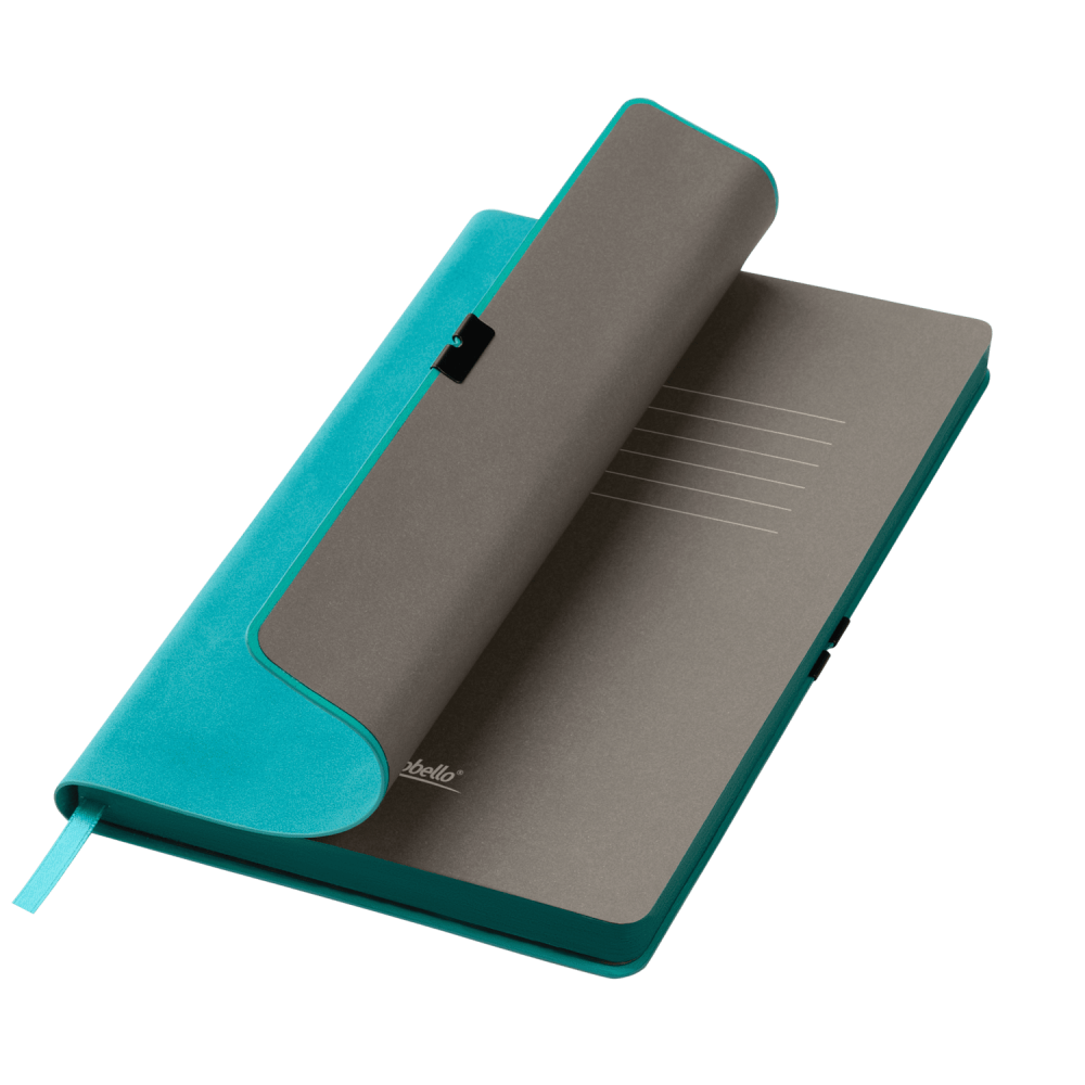 Горизонтальная резинка, фиксирующая обложку, дополнена металлическими элементами, которые не только защищают обложку от повреждений, но и служат стильным акцентом. Матовый срез в тон обложки и светло-кремовые страницы из гладкого, слегка шелковистого офсета подчеркивают изысканность дизайна. Атласное ляссе гармонично завершает образ этого элегантного ежедневника.